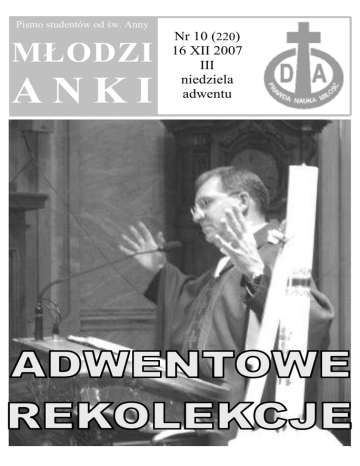 Pismo studentów od św. Anny MŁODZI ANKI Nr 10 (220) 16 XII 2007 III niedziela adwentu KOMENTARZ DO NIEDZIELNEJ EWANGELII ' 1 & % 2 " & , & - ' & ' ! ! ) ' & * " % % % ' " % ) ' , + & % " ! & ! 0 ) ! ) Pytanie zadane przez Jana Chrzciciela towarzyszy nam niezmiennie przez tyle setek lat i wciąż jest niezwykle aktualne. Niby wyznajemy wiarę w Jezusa Chrystusa, ale często podświadomie zastanawiamy się, czy rzeczywiście On jest „tym, który ma przyjść”. Okazji do zwątpienia nie brakuje i można by pomyśleć, że jesteśmy dziś w znacznie trudniejszej sytuacji niż Jan, który żył przecież w tym samym czasie i w tym samym miejscu co Jezus. Czy rzeczywiście on miał „łatwiej” niż my teraz? Aby odpowiedzieć na to pytanie potrzeba nieco głębszej refleksji nad tym, w jaki sposób traktujemy kwestie wiary i naszą relację z Bogiem. Czy jest ona wyłącznie jednym z licznie powtarzanych rytuałów i traktujemy ją tylko jako pewien mało realny symbol, czy też ma ona przełożenie na sposób naszego postępowania i ogólniej na nasze życie. Nie dalej jak tydzień temu zastanawialiśmy się nad tym, po co tak naprawdę faryzeusze wybierali się, aby przyjmować chrzest w Jordanie. Dzisiaj podobne pytanie zadaje nam Chrystus przestrzegając jednocześnie, abyśmy nie traktowali uczestnictwa w poszczególnych formach życia religijnego jedynie w 2 % ' % / & % + - $ ) % # % ) & " ' , * ) . " & % " % & ( (Mt 11,2-11 ) sposób instrumentalny i z przyzwyczajenia. Niestety takie „cukierkowe” przeżywanie niektórych ważnych wydarzeń oraz podkreślanie wyłącznie ich materialnego aspektu są dzisiaj na porządku dziennym. Potrzeba naprawdę nie lada wysiłku, aby mimo tak jednoznacznego przekazu postarać się odnaleźć w Bożym Narodzeniu prawdziwą i głęboką wartość wynikającą ze spotkania z Jezusem, który przychodząc w tak niesprzyjających warunkach nieustannie zaprasza każdego człowieka do nawrócenia i rozpoczynania wszystkiego od nowa. Przeżywając dziś już trzecią niedzielę Adwentu mamy bardzo dobrą okazję, aby pracowity okres bezpośrednich przygotowań do Świąt poprzedzić istotną refleksją i pytaniem – czemu te kolejne Święta Narodzenia Pańskiego mają służyć? Angażując się w przedświąteczne „ważne sprawy” bardzo łatwo zapomnieć o tym, co jest najważniejsze – o spotkaniu z Bogiem. Wtedy rzeczywiście pozostaną nam tylko puste opłatkowe gesty przy wigilijnym stole, smaczna kolacja, prezenty, tradycyjna pasterka i dwa wolne dni od pracy. Marcin Stębelski Być kobietą, która umie czekać Zawsze z radością witam kolejny Adwent – postanowienia, porządki i cierpliwe oczekiwanie na Boże Narodzenie. W ubiegłym roku spędziłam Święta sama, wraz z moją 93 – letnią babcią mieszkającą w niewielkim mieście. Wieczorem w pierwszy dzień Świąt wybrałam się na samotny długi spacer. Idąc ulicą, przyglądałam się świecącym lampkom rozwieszonym na choinkach, ludziom siedzącym w domach lub spacerującym po chodniku i pomyślałam, że oto kolejne Święta, a ja wciąż jestem sama i dalej czekam na miłość swojego życia. Trudno być cierpliwą, trudno nie robić nerwowych ruchów, nie brać sprawy w swoje ręce, nie wyruszać „na łowy”, nie zadawać Bogu ciągle tych samych pełnych pretensji pytań: dlaczego wciąż nie ma przy mnie męża i czemu to jest takie trudne? Ciężko tak po prostu zaufać. „Jestem bowiem świadomy zamiarów, jakie zamyślam co do Was (…) zamiarów pełnych pokoju, a nie zguby by zapewnić Wam przyszłość jakiej oczekujecie” (Jer 29, 11). Tego wieczoru zdałam sobie sprawę, że nie mam wpływu na swoje życie – On go ma, bo jest Bogiem, który zna potrzeby mojego serca lepiej niż ja sama. On nigdy się ani nie śpieszy, ani nie spóźnia – jest zawsze na czas. To ja ciągle nie umiem czekać, cieszyć się z Jego obecności i pozwalać Mu w samotności zmieniać moje serce i przygotowywać się do tego, co dla mnie zaplanował. Czas samotności to czas, w którym Jezus chce przemieniać mnie i każdą kobietę w taką, jaką sam chciałby mieć – kobietę znającą swoją wartość, silną, pełną życia, piękną, odważną, ufną, potrafiącą mówić NIE i pokorną jak Jego matka, czy wiele innych jeszcze bohaterek biblijnych historii. To On daje prawdziwe zaspokojenie i jedynie Jego miłość może wypełnić doskonale moje serce, jest tym, czego potrzebuję by być szczęśliwą. Miłość mężczyzny i do mężczyzny to tylko dodatek – uzupełnienie. Jeżeli relacja z Jezusem nie będzie priorytetową, najgłębszą relacją mojego życia i mojego przyszłego męża, to nie uda nam się zbudować małżeństwa, w którym oboje będziemy wzrastać w miłości, prawdzie, wolności, pokoju i świętości, czyli małżeństwa o jakim tak naprawdę marzymy. Katarzyna Kamińska 3 Jestem w trakcie parafialnych rekolekcji. Pojawiają się więc pytania: Co one mi dają? Czy spełniają moje oczekiwania? Jaki w ogóle mają dla mnie sens? Właściwie to udział w rekolekcjach był zawsze wpisany w mój kalendarz zajęć. Myślę, że jest to czas bardzo potrzebny każdemu z nas, by zatrzymać się na chwilę w przedświątecznym biegu zakupów, porządków domowych i wielu innych codziennych „pilnych spraw”. Po pierwsze, rekolekcje niezwykle mobilizują do głębszego rachunku sumienia oraz skorzystania z Sakramentu Pokuty i Pojednania, co z kolei pozwala z radością i pokojem w sercu przeżywać święta. Poza tym każde rekolekcje stanowią też bogactwo duchowe choćby dlatego, że prowadzi je zawsze inny ksiądz lub zakonnik. Lubię słuchać głoszonych przez nich nauk – każda z nich pomaga mi głębiej spojrzeć w siebie, na własne życie, prawdziwe i często także „wydumane” problemy. Kiedy słucham o różnych świadectwach wiary przedstawianych przez rekolekcjonistów, często kręcą się łezki w moim oku. Są one wyraze