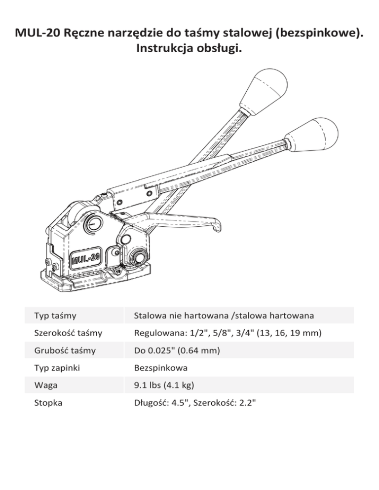 MUL-20 Ręczne narzędzie do taśmy stalowej (bezspinkowe
