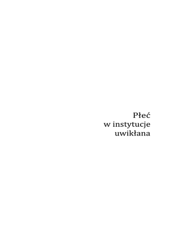 Recenzje: prof. zw. dr hab. Stanisław Obirek dr hab. Andrzej Bukowski, IS UJ Redaktor prowadząca: Anna Raciborska Redakcja i korekta: Marek Szczepaniak Projekt okładki: Katarzyna Juras Na okładce wykorzystano zdjęcie: Fotolia.com © Igor Gromoff [89268875] Copyright © 2016 by Wydawnictwo Naukowe Scholar Spółka z o.o. Projekt został sfinansowany ze środków Narodowego Centrum Nauki przyznanych na podstawie decyzji nr DEC-2011/01/B/HS6/01753 Wydanie książki dofinansowane również przez Akademię Górniczo-Hutniczą im. Stanisława Staszica w Krakowie (dotacja podmiotowa na utrzymanie potencjału badawczego, nr 11.11.430.158) ISBN 978-83-7383-810-9 Wydawnictwo Naukowe Scholar Spółka z o.o. ul. Wiślana 8 (róg Browarnej), 00-317 Warszawa tel./fax 22 692 41 18; 22 826 59 21; 22 828 93 91 dział handlowy: jak wyżej, w. 108 e-mail: [email protected] www.scholar.com.pl Wydanie pierwsze Skład i łamanie: WN Scholar (Jerzy Łazarski) Druk i oprawa: Mazowieckie Centrum Poligrafii, Warszawa SPIS TREŚCI Wstęp . . . . . . . . . . . . . . . . . . . . . . . . . . . . . . . . . . . . . . . . . . . . . . . . . . . . . . . . Rozdział 1. Gender, religia i instytucje religijne w badaniach socjologicznych. Refleksje wprowadzające . . . . . . . . . . . . . . 1. O miejscu kategorii gender w studiach nad religią . . . . . . . . . . . . . . . . . . . . 2. Relacje gender i religii w wymiarze mikro-, makro- i mezospołecznym – przegląd ustaleń badawczych . . . . . . . . . . . . . . . . . . . . . . . . . . . . . . . . . . . . 3. Świeccy w Kościele jako przedmiot badań socjologicznych. Kościoły jako organizacje pracy – przegląd ustaleń badawczych . . . . . . . . Rozdział 2. Wokół reguł i praktyk społecznych. O instytucjach społecznych i ich reprodukowaniu . . . . . . . . . . . . . . . . . . . 1. Instytucje społeczne w socjologicznej refleksji – od faktu do społecznego działania . . . . . . . . . . . . . . . . . . . . . . . . . . . . . . . . 2. Instytucje jako rezerwuar społecznych reguł i praktyk . . . . . . . . . . . . . . . . 2.1. Instytucje jako ograniczenie i ułatwienie działań . . . . . . . . . . . . . . . . . 2.2. Rekursywność reguł i działań społecznych – praktyki społeczne i logika stosowności . . . . . . . . . . . . . . . . . . . . . . . . 2.3. Heterogeniczność i procesualność reguł instytucjonalnych . . . . . . . . . 2.4. Językowe reprodukowanie reguł instytucjonalnych . . . . . . . . . . . . . . . 2.5. Formalne i nieformalne komponenty instytucji . . . . . . . . . . . . . . . . . . Podsumowanie . . . . . . . . . . . . . . . . . . . . . . . . . . . . . . . . . . . . . . . . . . . . . . . . . Rozdział 3. O instytucjonalnym rozumieniu gender i wymiarach reprodukowania wzorów płciowych w porządkach religijnych . . . . . . . . . 1. Wieloznaczność pojęciowa i problemy z definicją gender . . . . . . . . . . . . . . 2. Między esencją a konstruktem płciowym. Esencjalizm, konstrukcjonizm w badaniach nad płcią i ich ograniczenia . . . . . . . . . . . . . . . . . . . . . . . . . . . 2.1. Esencja płciowa i opresyjność gender w studiach nad religią . . . . . . . 2.2. Krytyka konstrukcjonistyczna i jej implikacje w studiach socjologicznych . . . . . . . . . . . . . . . . . . . . . . . . . . . . . . . . . 3. Gender jako instytucja społeczna – przegląd ujęć teoretycznych i definicja operacyjna . . . . . . . . . . . . . . . . . . . . . . . . . . . . . . . . . . . . . . . . . . 3.1. W poszukiwaniu syntezy – koncepcje integracyjne gender . . . . . . . . . 3.2. Gender jako zinstytucjonalizowane reguły stosowności . . . . . . . . . . . 9 17 17 21 31 35 37 42 42 44 48 51 54 56 58 58 63 63 66 69 69 75 5 3.3. Praktyki płciowe i dynamika gender jako instytucji . . . . . . . . . . . . . . . 3.4. Sprawstwo płciowe i refleksyjność w porządkach religijnych . . . . . . . 3.5. Gender regimes, organizacje społeczne i intersekcjonalność płci społeczno-kulturowej . . . . . . . . . . . . . . . . . . . . . . . . . . . . . . . . . . . Rozdział 4. Oficjalnym głosem o płci. Kobiecość i męskość w formalnych dokumentach i regułach Kościoła rzymskokatolickiego . . . 1. Kobiecość i męskość w dokumentach kościelnych – próba rekonstrukcji stanowiska . . . . . . . . . . . . . . . . . . . . . . . . . . . . . . . . . . 2. Kobiecość i męskość w porządku wyobrażeniowo-symbolicznym Kościoła rzymskokatolickiego . . . . . . . . . . . . . . . . . . . . . . . . . . . . . . . . . . . 2.1. Domyślna męskość, problematyczna kobiecość? . . . . . . . . . . . . . . . . . 2.2. Esencjalizm, boskie fundamenty i niezmienność porządku płci . . . . . . 2.3. Mężczyzna i trzy kobiety – wokół kategorii płciowych . . . . . . . . . . . . 2.4. Relacja płciowa – między komplementarnością a hierarchią . . . . . . . . 3. Kobiecość i męskość w porządku prawnym – podział pracy i dostęp do władzy w porządku instytucjonalnym Kościoła . . . . . . . . . . . . 3.1. Miejsce świeckich kobiet i mężczyzn w porządku prawnym Kościoła rzymskokatolickiego . . . . . . . . . . . . . . . . . . . . . . . . . . . . . . . Rozdział 5. Reprodukowanie wzorów kobiecości i męskości jako problem badawczy. Metodologia badań i charakterystyka ich realizacji . . . . . . . . . . . . . . . . . . 1. Perspektywa interpretacyjna . . . . . . . . . . . . . . . . . . . . . . . . . . . . . . . . . . . . . 2. Struktura Kościoła rzymskokatolickiego w Polsce. Metodologia badań i koncepcja badań . . . . . . . . . . . . . . . . . . . . . . . . . . . . . 2.1. Struktura Kościoła rzymskokatolickiego w Polsce . . . . . . . . . . . . . . . . 2.2. Badania ilościowe – rekonstrukcja struktury płciowej organizacji kościelnych . . . . . . . . . . . . . . . . . . . . . . . . . . . . . . . . . . . . . 2.3. Metody jakościowe . . . . . . . . . . . . . . . . . . . . . . . . . . . . . . . . . . . . . . . . 3. Dylematy etyczne, problem lojalności i