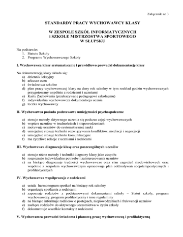 Standardy pracy wychowawcy klasy (załącznik nr 3)