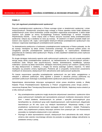 PANEL E Czy i jak regulować przedsiębiorczość społeczną
