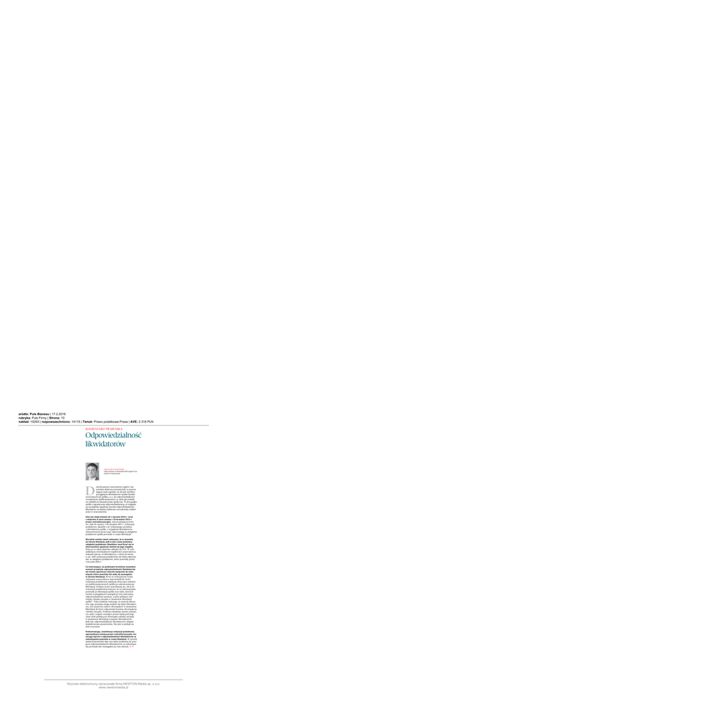 zródło: Puls Biznesu | 17.2.2016 rubryka: Puls Firmy | Strona: 10 nakład: 15293 | rozpowszechniono: 14115 | Temat: Prawo podatkowe-Prasa | AVE: 2 316 PLN KOMENTARZ PRAWNIKA Odpowiedzialność likwidatorów GRZEGORZ OLSZEWSKI radca prawny w Kancelarii KSP Legal & Tax Advice w Katowicach D otychczasowe orzecznictwo sądów i stanowiska doktryny prawnej były w przeważającej części zgodne, że nie jest możliwe pociągnięcie likwidatorów spółek handlowych innych niż spółka z o.o. do odpowiedzialności za należności publicznoprawne, tj. takie jak podatki czy składki na ubezpieczenie społeczne. W przypadku spółki z ograniczoną odpowiedzialnością, ze względu na szczególną regulację, kwestia odpowiedzialności likwidatora za daniny publiczne wywoływała rozbieżności w orzecznictwie. Stan ten uległ zmianie od 1 stycznia 2016 r. wraz z wejściem w życie ustawy z 10 września 2015 r. prawo restrukturyzacyjne, wprowadzającej nowy art. 116b do ustawy z 29 sierpnia 1997 r. ordynacja podatkowa. Zgodnie z § 1 wskazanego przepisu: „Likwidatorzy spółki, z wyjątkiem likwidatorów ustanowionych przez sąd, odpowiadają za zaległości podatkowe spółki powstałe w czasie likwidacji”. Wyraźnie zostało zatem wskazane, że w stosunku do okresu likwidacji, jeśli w tym czasie powstaną zaległości podatkowe, likwidator musi liczyć się ze skierowaniem egzekucji również do jego majątku. Dotyczy to także płatności składek do ZUS. W celu uniknięcia ewentualnych wątpliwości ustawodawca wskazał wprost, że likwidatorzy, o których mowa w art. 116b ordynacji podatkowej, nie będą odpowiadać za zaległości podatkowe, które powstały przed 1 stycznia 2016 r. Co interesujące, na podstawie brzmienia znowelizowanych przepisów odpowiedzialności likwidatorów nie można ograniczyć obecnie wyłącznie do zobowiązań, które powstały lub stały się wymagalne w okresie likwidacji. Wraz ze wskazanymi wyżej zmianami ustawodawca wprowadził do treści ordynacji podatkowej regulacje dotyczące należności publicznoprawnych spółki po zakończeniu jej likwidacji. Dodany przez nowelizację art. 116 § 2a ordynacji podatkowej stanowi, że za zobowiązania powstałe po likwidacji spółki oraz takie, których termin wymagalności nastąpił po tym zdarzeniu, odpowiedzialność poniosą „osoby pełniące obowiązki członka zarządu w momencie likwidacji spółki”. Taka redakcja wskazuje, że pośród adresatów tego przepisu mogą znaleźć się także likwidatorzy, ich ustawowy zakres obowiązków w momencie likwidacji de facto odpowiada bowiem obowiązkom członka zarządu. Praktyka działania ustawy pokaże, czy sądy i organy stosujące prawo będą pod pojęciem osób pełniących obowiązki członka zarządu w momencie likwidacji rozumieć likwidatorów. Jeśli tak, odpowiedzialność likwidatorów ulegnie dodatkowemu poszerzeniu. Nie jest to jednak na dziś oczywiste. Podsumowując, nowelizacja ordynacji podatkowej wprowadzona ustawą prawo restrukturyzacyjne rozstrzyga wprost o odpowiedzialności likwidatorów za zobowiązania powstałe w czasie likwidacji. W sposób mniej bezpośredni daje ona także podstawę do przyjęcia odpowiedzialności likwidatorów za zobowiązania powstałe lub wymagalne po tym okresie. © Ⓟ Wycinek elektroniczny opracowała firma NEWTON Media sp. z o.o. www.newtonmedia.pl