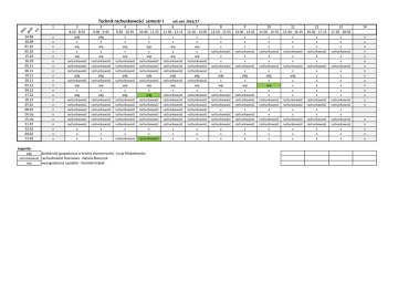 da ta go dz in a Technik rachunkowości semestr I 24.09 30.09 01.10 02.10 15.10 16.10 05.11 06.11 19.11 20.11 03.12 04.12 17.12 18.12 07.01 08.01 14.sty 15.sty 21.01 22.01 04.02 12.02 rok szkl. 2016/17 1 2 8.10 - 8.55 3 9.00 - 9.45 4 9.50 - 10.35 5 10.40 - 11.25 6 11.30 - 12.15 7 12.20 - 13.05 8 13.10 - 13.55 9 14.00 - 14.45 10 14.50 - 15.35 11 15.40 - 16.25 12 16.30 - 17.15 13 17.20 - 18.05 14 x x x x x x x x x x x x x x x x x x x x x x pdg x wip x wip rachunkowość rachunkowość rachunkowość pdg rachunkowość wip x pdg rachunkowość rachunkowość rachunkowość rachunkowość rachunkowość rachunkowość x x x pdg x wip x wip rachunkowość rachunkowość rachunkowość pdg rachunkowość wip x pdg rachunkowość rachunkowość rachunkowość rachunkowość rachunkowość rachunkowość x x x x x wip x wip rachunkowość rachunkowość rachunkowość pdg rachunkowość wip x pdg rachunkowość rachunkowość rachunkowość rachunkowość rachunkowość rachunkowość x x rachunkowość x x wip x wip rachunkowość rachunkowość rachunkowość pdg rachunkowość wip x pdg rachunkowość rachunkowość rachunkowość rachunkowość rachunkowość rachunkowość x x rachunkowość x x wip x wip rachunkowość rachunkowość rachunkowość pdg rachunkowość wip x rachunkowość rachunkowość rachunkowość rachunkowość rachunkowość rachunkowość rachunkowość x x x x x wip x wip rachunkowość rachunkowość rachunkowość pdg rachunkowość wip x rachunkowość rachunkowość rachunkowość rachunkowość rachunkowość rachunkowość rachunkowość x x x x x x rachunkowość x x rachunkowość x pdg x wip x rachunkowość rachunkowość rachunkowość x rachunkowość rachunkowość rachunkowość x x x x x x rachunkowość x x rachunkowość x pdg x wip x rachunkowość rachunkowość rachunkowość x rachunkowość rachunkowość rachunkowość x x x x x x rachunkowość x x rachunkowość x pdg x wip x x rachunkowość rachunkowość x x rachunkowość rachunkowość x x x x x x rachunkowość x x rachunkowość x pdg x x x x rachunkowość rachunkowość x x rachunkowość rachunkowość x x x x x x rachunkowość x x rachunkowość x x x x x x rachunkowość rachunkowość x x rachunkowość rachunkowość x x x x x x rachunkowość x x rachunkowość x x x x x x rachunkowość rachunkowość x x rachunkowość rachunkowość x x x x x x x x x x x x x x x x x x Legenda: pdg działalność gospodarcza w branży ekonomicznej - Łucja Modzelewska rachunkowość rachunkowość finansowa - Natalia Błaszczyk wip wynagrodzenia i podatki - Dominik Kubiak x x x x x