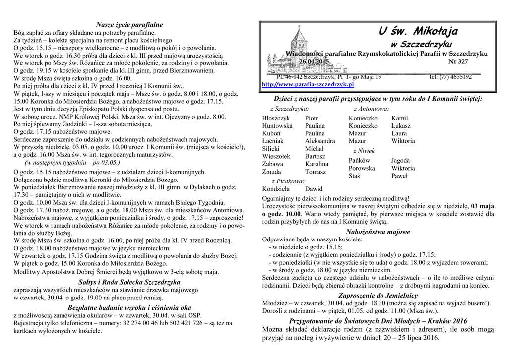 gazetka 327 - Rzymskokatolicka Parafia św. Mikołaja w Szczedrzyku