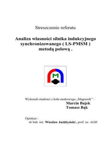 Streszczenie referatu Analiza własności silnika indukcyjnego synchronizowanego ( LS-PMSM ) metodą polową . Wykonali studenci z koła naukowego „Magnesik” : Marcin Bajek Tomasz Bąk Opiekun : dr hab. inż. Wiesław Jażdżyński , prof. nz. AGH 1. WSTĘP . Celem referatu było zamodelowanie w programie Femag silnika indukcyjnego klatkowego , a następnie zmodyfikowanie jego konstrukcji – wstawienie do wirnika magnesów stałych oraz zmniejszenie powierzchni żłobków klatki maszyny . W ten sposób uzyskujemy silnik indukcyjny synchronizowany ( LS-PMSM Linear Starting Permanent Magnet Synchronous Machine ) . Łączy on w sobie zaletę silnika indukcyjnego – samorozruch , oraz silnika synchronicznego – pracę w stanie ustalonym bez strat w wirniku. Zaprojektowany przez nas silnik indukcyjny był wzorowany na rzeczywistej maszynie 7.5 [kW] , której charakterystyki uzyskane podczas pomiarów porównaliśmy z obliczonymi z modelu . 2. PROGRAM „FEMAG” . Femag korzysta w swych obliczeniach z metody elementów skończonych . Metoda ta polega na zbudowaniu siatki złożonej z elementów trójkątnych lub wielokątnych ( przy czym dokładniejsze wyniki dają figury o jak najmniejszej ilości boków ) i wyznaczeniu w każdej z takich figur potencjału wektorowego . W całym trójkącie jego wartość jest równa , stąd im mniejsze elementy , tym większa dokładność . Potencjał jest wyznaczany z podstawowych praw Maxwella . rot H = J + δD δt div B = 0 rot E = − div B = ρ Rys.1 Metoda elementów skończonych . δB δt Wartość potencjału w elemencie to : m 1 (ai + bi x + ci y ) Ai ∆ 2 i ai = x j ym − xm y j A( x, y ) = ∑ bi = y j − ym ci = xm − x j FEMAG dokonuje obliczeń jedynie w przestrzeni 2 wymiarowej . W celu uwzględnienia 3-wymiarowości stosujemy model polowo-obwodowy . Rys.2 Elementy schematu zastępczego maszyny uwzględniane przez program Femag . Femag to program do obliczeń polowych , w którym zadaje się wartość prądu . Komplikuje to nieco pracę z nim , ponieważ w silnikach przyjęło się traktować za wymuszenie napięcie . Inną niedogodnością Femaga jest jego niezdolność równoczesnego obliczania pola przemiennego z polem pochodzącym od magnesów stałych . 3. SILNIK INDUKCYJNY . Zamodelowany w przestrzeni dwuwymiarowej silnik miał wymiary silnika rzeczywistego , na którym się wzorowaliśmy . Rys.3 Przekrój silnika indukcyjnego . Objaśnienia do rysunku : 1 – uzwojenie stojana 2 – klatka aluminiowa 3 – wirnik i stojan z blachy elektrotechnicznej 470-50A 4 – wał wykonany ze stali ST5 Zasymulowaliśmy przebieg linii sił pola dla trzech różnych stanów maszyny : jałowego , znamionowego oraz zwarcia . Pod każdym z nich znajduje się wykres indukcji w szczelinie powietrznej . bieg jałowy stan znamionowy stan zwarcia Rys.4 Rozkład linii sił pola dla silnika indukcyjnego . • dla biegu jałowego praktycznie cały strumień wnika do rdzenia wirnika oraz wału maszyny , wpływ klatki jest znikomy • dla stanu znamionowego gęstość linii sił pola w żelazie wirnika oraz wale jest znacznie mniejsza • przy stanie zwarcia ekranujący wpływ klatki jest tak duży , że strumień praktycznie nie wnika do wału oraz do żelaza wirnika widać tu również inny kształt linii w stojanie Przy pomocy programu Femag wyznaczyliśmy dwie charakterystyki silnika – rozruchową ( zależność momentu elektrycznego od poślizgu ) oraz zwarciową ( prąd w funkcji napięcia przy zatrzymanej maszynie ) . 90 80 70 prąd I [A] 60 50 40 30 20 10 0 0 50 100 150 200 250 300 350 napięcie U [V] Rys.5 Charakterystyka zwarciowa . Przy zatrzymanym wirniku nie indukuje się siła elektromotoryczna rotacji, maszyna pracuje jak transformator. Odbieganie charakterystyki od linii prostej to efekt nasycania się żelaza . 200 180 moment Te [Nm] 160 140 120 100 80 60 40 20 0 1 0,8 0,6 0,4 0,2 0 poslizg s Rys.6 Charakterystyka rozruchowa . Zależność tą otrzymuje się przy stałym napięciu silnika równym 400 [V] . Porównanie tej charakterystyki z otrzymaną z pomiarów na rzeczywistym silniku dało zaskakująco dobry wynik – moment rozruchowy rzeczywistej maszyny 131,5 [Nm] , z modelu – 132 [Nm] . 4. SILNIK INDUKCYJNY SYNCHRONIZOWANY LS-PMSM. Pomimo , że silniki elektryczne wykorzystywane są od ponad stu lat, to dynamiczny rozwój PMSM rozpoczął się dopiero w ostatniej dekadzie . Głównym ograniczeniem był brak odpowiednich magnesów trwałych . Z tego też względu jest to wciąż pole dla eksperymentów, a nie szablonowych rozwiązań . Za punkt wyjścia przyjęliśmy badany silnik indukcyjny , poprzez modyfikację którego dążyliśmy do uzyskania specjalnego typu maszynę PMSM, tzw. LS-PMSM (spotykana nazwa – silnik indukcyjny synchronizowany). Rys.7 Przekrój analizowanego silnika indukcyjnego synchronizowanego . Objaśnienia do rysunku 7 : 1 – uzwojenie stojana 2 – zredukowana klatka aluminiowa 3 – magnesy stałe 4 – wirnik i stojan z blachy elektrotechnicznej 470-50A 5 – wał wykonany ze stali ST5 Wprowadzenie magnesu stałego spowodowało istotne zmiany w rozkładzie pola magnetycznego w maszynie . + a) Pole od magnesu = b) Pole od prądu stojana c) Pole wypadkowe Rys.8 Przebieg linii sił pola . Na wykresach pole w szczelinie . Pole wypadkowe to suma pola od magnesu i od prądu stojana .Można zauważyć: ad a) praktycznie cała energia jest zgromadzona w szczelinie nad magnesem ad b) rozkład zbliżony jest do sinusoidy ad c) przebieg w pracującej maszynie , widoczne silne oddziaływanie magnesu , rozkład sinusoidalny (wyraźna podstawowa harmoniczna) Ponieważ jedną z głównych zalet projektowanego silnika ma być samorozruch , wykonaliśmy niezbędne symulacje mające ustalić czy istnieje moment rozruchowy . Uzyskany przez nas moment rozruchowy wyniósł TRozruch = 245 [Nm] , co jest wartością blisko dwukrotnie większą od tej w silniku indukcyjnym . Symulacja zmiany pola w trakcie obrotu . Obecn