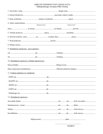 Arkusz ewidencyjny działacza MZPN