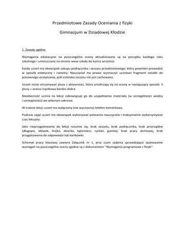 Przedmiotowe Zasady Oceniania z fizyki Gimnazjum w Dziadowej