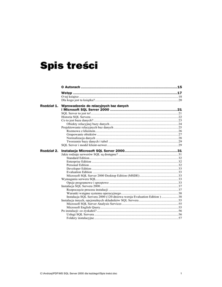 C:\Andrzej\PDF\MS SQL Server 2000 dla każdego\!Spis treści.doc
