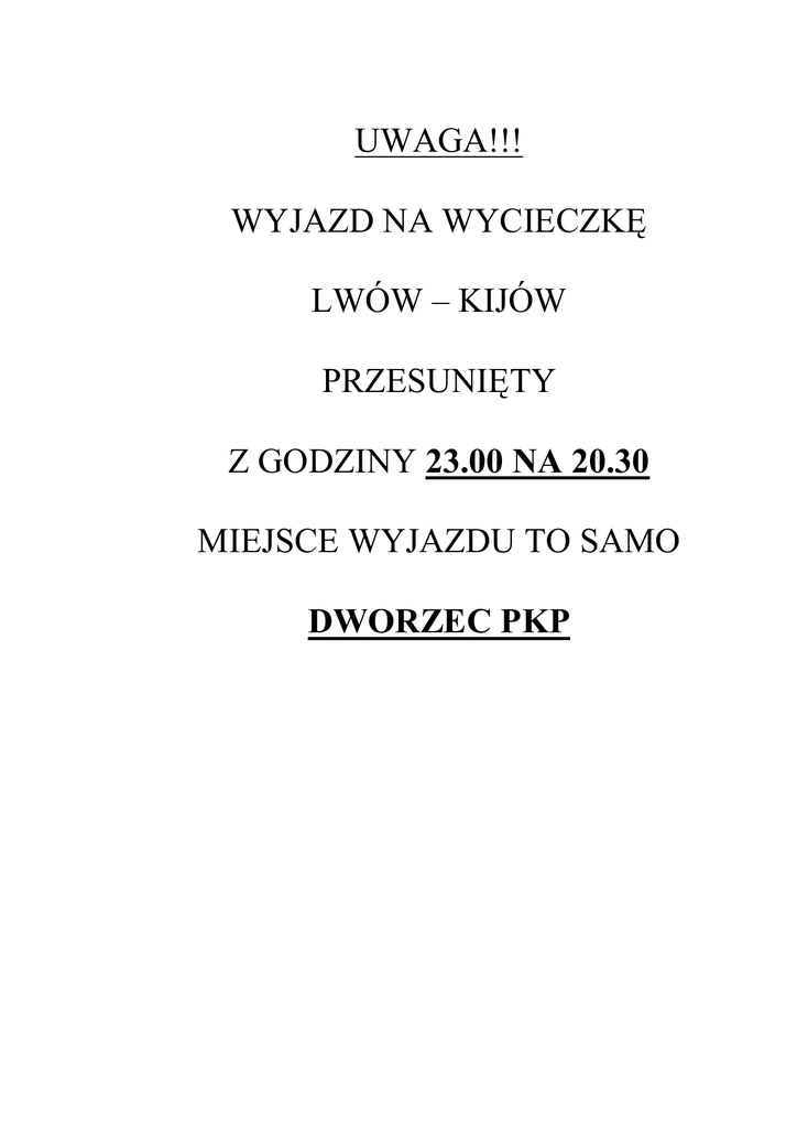 UWAGA!!! WYJAZD NA WYCIECZKĘ LWÓW – KIJÓW
