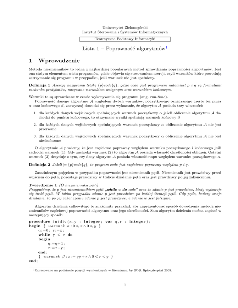 Lista 1 – Poprawność algorytmów1