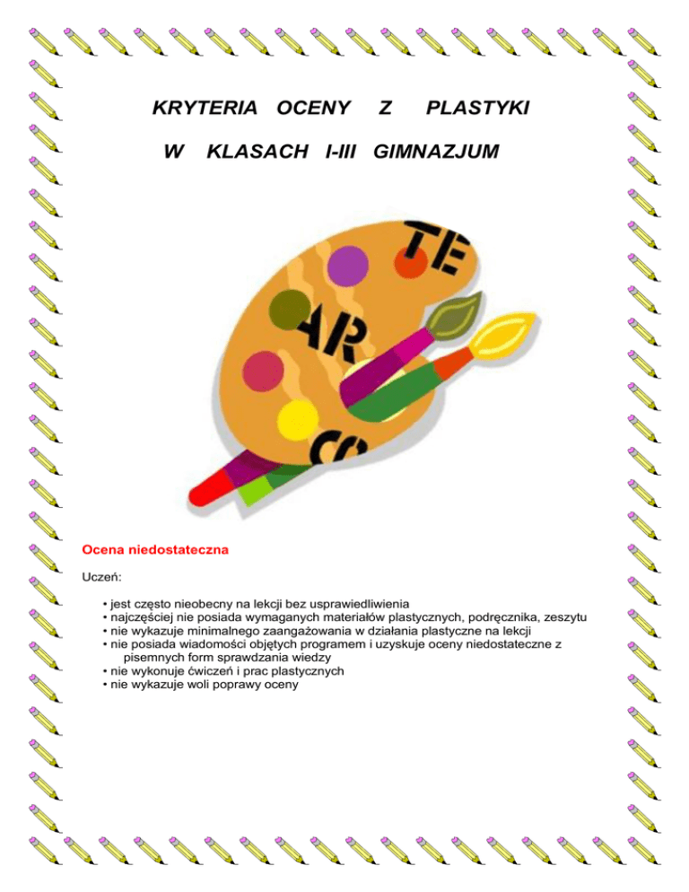 KRYTERIA OCENY Z PLASTYKI W KLASACH I