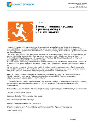 żywiec: turniej ręcznej z jelenią górą i... harlem shake!