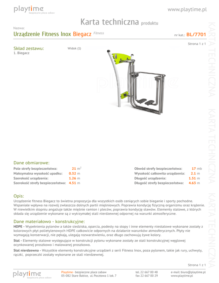 Karta tech.: Urządzenie Fitness Inox Biegacz Fitness