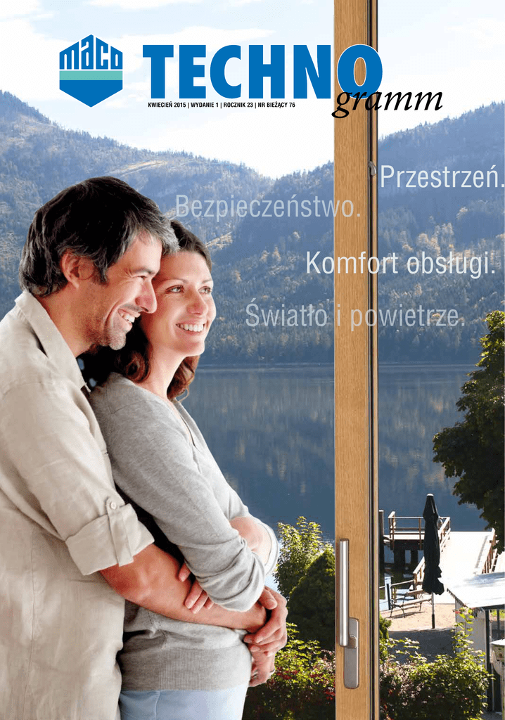 Kwiecień 2015 | Wydanie 1 | Rocznik 23 | Nr bieżący 76 Przestrzeń. Bezpieczeństwo. Komfort obsługi. Światło i powietrze. Edytorial MACO Jürgen Pratschke Herbert Roland Steiner Szanowni Partnerzy i Przyjaciele naszej firmy, W 1971 roku Ernst Mayer przejął kierownictwo w firmie MACO Beschläge. Na przestrzeni ostatnich 44 lat, we współpracy z wiodącym prym zespołem rozwinął on przedsiębiorstwo do obecnej liczby 2300 pracowników. Do grupy MACO należą trzy austriackie przedsiębiorstwa produkcyjne, rosyjski zakład montażowy oraz 16 międzynarodowych oddziałów dystrybucyjnych. Co roku w ponad 40 krajach na całym świecie w nasze okucia, mogące poszczycić się znakiem „Made in Austria”, wyposaża się okna w liczbie sięgającej milionów sztuk. MACO zalicza się do wiodących na świecie producentów okuć budowlanych. Źródeł sukcesu firmy należy upatrywać w konsekwentnej, zorientowanej na potrzeby użytkownika pracy kierownictwa i pracowników w ścisłej współpracy z Państwem – naszymi Klientami. Nasza obszerna produkcja własna, przywództwo technologiczne, terminowość i doskonale wykształceni pracownicy stanowią niewątpliwie fundament naszej działalności. Zarówno Państwo, jak i my stajemy w konfrontacji z otoczeniem o coraz większym stopniu złożoności, co dla nas wszystkich jest niebywałym wyzwaniem. Podążając za naszą maksymą „Sukces może być wyłącznie rezultatem profesjonalnej pracy”, opracowujemy rozwiązania całościowe, które mają za zadanie wzmocnić Państwa konkurencyjność na niezwykle wymagającym rynku. O naszym wspólnym sukcesie decyduje w dużej mierze wysoka jakość produktów, gwarantowana przez gęstą sieć kontroli jakości. W tym kontekście możemy z dumą poinformować Państwa o ponownej certyfikacji naszego Zintegrowanego Systemu Zarządzania (ISO 9001, ISO 14001 i OHSAS 18001), zakończonej pomyślnie w marcu tego roku. Z relacją tego wydarzenia mogą się Państwo zapoznać na stronie 22 i 23 tego wydania. Okucia MACO stanowią niezawodną receptę na sukces zarówno w nowym budownictwie, jak i w przypadku modernizacji obiektów. Mogli się o tym przekonać goście targów BAU w Monachium, które odbyły się w styczniu tego roku. W centrum naszej prezentacji znalazły się korzyści użytkowe oferowanej przez nas techniki okuć do okien i drzwi w kontekście komfortu obsługi, efektywności energetycznej i bezpieczeństwa. Imponującym potwierdzeniem faktu występowania pobytu i zapotrzebowania na nasze produkty spełniające aktualne potrzeby budow- lane i mieszkaniowe jest ponowny wzrost liczby gości z kraju i zagranicy w porównaniu z rokiem 2013. Wszystkim odwiedzającym nasze stoisko wystawowe chcielibyśmy jeszcze raz serdecznie podziękować za okazane zainteresowanie. Jeżeli nie mieli Państwo okazji obejrzenia naszego stoiska, zachęcamy do zapoznania się z podsumowaniem znajdującym się na kolejnych stronach tego wydania. Warto także skorzystać z wiedzy naszych specjalistycznych doradców, którzy są zawsze gotowi, by omówić z Państwem tematy związane z okuciami i oferowanymi usługami, a także poruszyć kwestię Państwa indywidualnych zapotrzebowań. Mając w perspektywie nadchodzące ciepłe miesiące, świadomie skupimy się w tym wydaniu magazynu na naszych okuciach podnoszono-przesuwnych RAIL -SYSTEMS. Zaczerpnijcie Państwo inspirację z możliwości otwarcia przestrzeni życiowej na naturę, Jürgen Pratschke Dyrektor oferując swoim klientom „panoramiczny widok bez barier”. Podobnie jak my, przywiązują Państwo dużą wagę do bezpieczeństwa i dobrego, zdrowego samopoczucia swoich klientów. W przełożeniu na rozwiązania produktowe te obszary tematyczne znajdują odzwierciedlenie przykładowo w antywłamaniowych okuciach okiennych MACO i naszych ukrytych w strukturze okna zaworach wrębu okna MACO VENT. Więcej informacji na ten temat znajdziecie Państwo również w aktualnym wydaniu magazynu TECHNOgramm. Życzymy przyjemnej lektury. Zgodnie z zapowiedzią z poprzedniego wydania, Herbert Roland Steiner został powołany na początku tego roku po raz kolejny na stanowisko dyrektora spółek MACO. Cieszymy się, że w przyszłości będziemy Państwa mogli wspólnie informować o rozwoju firmy MACO. Serdeczne pozdrowienia z Salzburga Herbert Roland Steiner Dyrektor Spis treści »Edytoriał » Przegląd targów budownictwa BAU 2015 » Okucia podnoszono-przesuwne RAIL-SYSTEMS » Fizyka okuć Komfortowe amortyzatory krańcowe RAIL-SYSTEMS 2 Kwiecień 2015 2 3 4-9 10-13 »Ochrona antywłamaniowa w oknach » Zawór wrębu okna MACO-VENT » Ponowna certyfikacja Zintegrowanego Systemu Zarządzania MACO »W skrócie 14-17 18-21 22-23 24 Zeskanuj kod QR i czytaj TECHNOgramm na urządzeniach mobilnych iPhone i iPad! raport Targi budownictwa BAU 2015 WYGODNA W OBSŁUDZE TECHNIKA OKUĆ PRZEKONUJE SPECJALISTÓW WENTYLACJA Niemal hermetyczne powłoki budynków w energooszczędnych obiektach nowych i modernizowanych stawiają przed planistami i mieszkańcami coraz wyższe wymagania. Palącymi kwestiami stają się efektywna wymiana powietrza i odprowadzanie nagromadzonej wilgoci. Z pomocą przychodzi w tym przypadku ukryty wewnątrz konstrukcji okiennej wrębowy wentyl okienny MACO-VENT. Wentyl reguluje samoczynnie, bez ingerencji użytkownika ilość napływającego i wywiewanego powietrza, dbając tym samym o optymalną wymianę powietrza, zapewniającą ochronę przez wilgocią zgodnie z normą DIN 1946-6. ZAMÓWIENIA ONLINE Dopełnienie naszego portfolio okuć stanowią przydatne usługi dodatkowe. Należy do nich między innymi techniczny katalog online MACO. Z katalogu można korzystać za pośrednictwem naszego portalu klienta, który jest dostępny po zalogowaniu. To proste w użytkowaniu narzędzie stworzono z myślą o wszystkich partnerach rynkowych, umożliwiające m.in. zamawianie naszych okuć bezpośrednio online. KOMFORT OBSŁUGI Obowiązujące obe