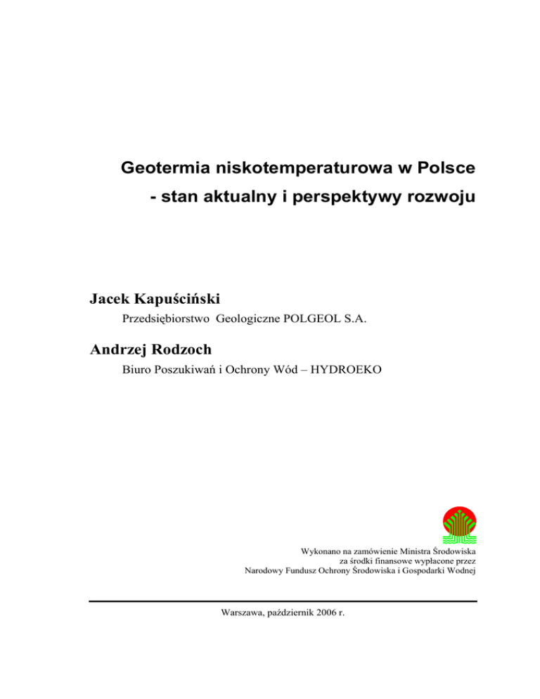 STAN I PERSPEKTYWY ROZWOJU GEOTERMII NISKOTEMPERATUROWEJ