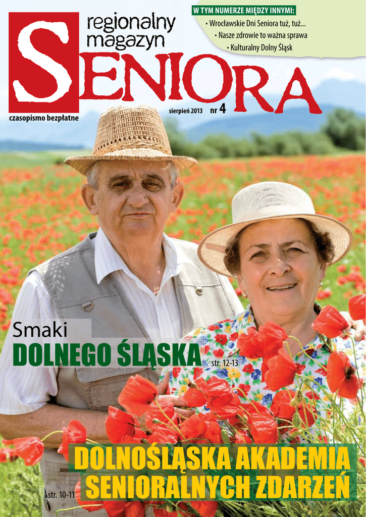 W TYM NUMERZE MIĘDZY INNYMI: · Wrocławskie Dni Seniora tuż, tuż... · Nasze zdrowie to ważna sprawa · Kulturalny Dolny Śląsk czasopismo bezpłatne sierpień 2013 nr 4 Smaki DOLNEGO ŚLĄSKA str. 12-13 DOLNOŚLĄSKA AKADEMIA SENIORALNYCH ZDARZEŃ str. 10-11 OD REDAKCJI Przed nami dolnośląskie wydarzenie roku – Wrocławskie Dni Seniora 2013. Tę imprezę wymyśliło i prowadzi do dziś Wrocławskie Centrum Seniora. Pamiętam jej początki. Nie były skromne, bo od razu wszystko ruszyło pełną parą – zabawy, targi, wystawy, prezentacje klubów seniora, talentów osób starszych itp. Formuła wydarzenia nie zmienia się (po co zmieniać coś, co jest dobre, a poza tym lepsze jest wrogiem dobrego), ale organizatorzy każdego roku dbają, by nie zabrakło nowych oryginalnych propozycji i niespodzianek. Można o nich przeczytać na str. 4, w artykule zapowiadającym tegoroczne święto seniorów . Polecam także podsumowanie Dolnośląskiej Akademii Senioralnych Zdarzeń (str. 10-11). To wyjątkowe wydarzenie zgromadziło w Kowarach ponad stu seniorów z Dolnego Śląska. Miło nam, że organizatorzy poprosili nas o patronat nad imprezą. Nasza redakcja była pod wrażeniem profesjonalizmu zespołu realizującego projekt i serdeczności, jaka panowała podczas spotkań i warsztatów. W tym wydaniu kontynuujemy poradnik ZUS i rozpoczynamy cykl poświęcony dolnośląskiej kuchni regionalnej. Autorka tekstów poświęconych dolnośląskim smakom – pani Barbara Jakimowicz-Klein – jest specjalistką i wielką pasjonatką naszych regionalnych smaków. Mamy nadzieję, że spodoba się Państwu ten cykl i aktywnie włączycie się w jego przygotowywanie. Życzę przyjemnej lektury Izabela Siwińska Redaktor naczelna – wydawca Tu znajdziesz BEZPŁATNY MIESIĘCZNIK DLA SENIORÓW Właściciel Wydawnictwo Regiony ul. Czecha 9/7 59-850 Świeradów-Zdrój tel. kom. 500 391 067 [email protected] www.region-press.eu Redak tor naczelna Izabela Siwińska, redaguje zespół Reklama Drukarnia tel. kom. 500 391 067 512 282 761, 503 422 579 [email protected] Klaudia-Druk ul. Obwodowa 25 88-100 Inowrocław Redakcja nie ponosi odpowiedzialności za treść publikowanych reklam, ogłoszeń i listów. Zastrzegamy sobie prawo do skrótów i korekt przy publikacji nadesłanych tekstów. Materiałów niezamówionych redakcja nie zwraca. Teksty sponsorowane – (TS). znajdź nas na „Regionalny Magazyn Seniora” Wrocław • Wrocławskie Centrum Seniora (pl. Dominikański 6) i współpracujące z nim kluby seniora • Związek Kombatantów RP (ul. Energetyczna 14) • Urząd Miejski Wrocławia (Sukiennice, pl. Nowy Targ, ul. Zapolskiej) • Biblioteki: ul. Lwowska, ul. Wyszyńskiego, ul. Jelenia • Mediateki: pl. Teatralny, ul. Reja • Muzea: Narodowe (pl. Powstańców Warszawy), Muzeum Miejskie – Pałac Królewski (ul. Kazimierza Wielkiego), Ratusz-Rynek • Ośrodek Kultury i Sztuki, Rynek-Ratusz • Centrum Handlowe Arena (ul. Komandorska) • Towarzystwo Miłośników Wrocławia (kamieniczka „Małgosia”) • NFZ przy ul. Dawida • Uniwersytety Trzeciego Wieku: ul. Dawida, ul. Katedralna • Apteki: Św. Macieja (pl. św. Macieja), ul. Młodych Techników, ul. Powstańców Śl. • Przychodnia, ul. Dobrzyńska • Klub Muzyki i Literatury, pl. Kościuszki • Synexus, ul. Swobodna • Dolnośląska Organizacja Turystyczna, ul. Świdnicka • Filharmonia, ul. Piłsudskiego Region • ROTAS – Biuro Tłumaczeń, ul. Kościuszki 34, Zgorzelec • Urząd Miejski w Jeleniej Górze, pl. Ratuszowy 58 (przybudówka) • Dom Zdrojowy w Świeradowie-Zdroju, ul. Konstytucji 3 Maja, oraz wybrane restauracje i punkty usługowe w mieście • Hotel Berliner, Świeradów-Zdrój, ul. Piłsudskiego 8 • Rada Seniorów w Legnicy • Przedwiośnie, Kowary, ul. Górnicza 22 • Zakład Ubezpieczeń Społecznych w Legnicy, ul. Wł. Grabskiego 26, oraz podległe jednostki • Zakład Ubezpieczeń Społecznych w Wałbrzychu, pl. Grunwaldzki 1, oraz podległe jednostki • Zakład Ubezpieczeń Społecznych we Wrocławiu, ul. Pretficza 11, oraz podległe jednostki • Informacja Turystyczna w Mirsku, Rynek-Ratusz www.magazynseniora.pl 2 nr 4 | sierpień 2013 AKTUALNOŚCI Przegląd funkcjonowania systemu emerytalnego Przegląd funkcjonowania systemu emerytalnego, pierwszy od startu reformy w 1999 r., przeprowadziły Ministerstwo Pracy i Polityki Społecznej oraz Ministerstwo Finansów. Przeanalizowano skutki reformy dla bezpieczeństwa i wysokości przyszłych emerytur, a także jej wpływ na finanse publiczne, rynek kapitałowy i wzrost gospodarczy. E K E K L A M A braku jakichkolwiek zmian, zawieszenia składki przekazywanej do OFE, powrotu do składki przekazywanej do OFE w wysokości 7,3 proc., programowanej wypłaty emerytur. Pod koniec czerwca ministrowie Władysław Kosiniak-Kamysz i Jacek Rostowski zarekomendowali przekazanie do konsultacji społecznych trzech propozycji zmian: likwidację obligacyjnej części OFE, dobrowolność udziału w OFE, dobrowolność udziału w OFE z dodatkową składką. Wyboru ostatecznego rozwiązania rząd dokona po zakończeniu konsultacji społecznych. Więcej informacji na ten temat można znaleźć na stronie www.mpips.gov.pl. (red) Zespół ekspertów MPiPS i MF przeanalizował dziewięć rekomendacji zmian, które rozwiązywałyby problemy zidentyfikowane w czasie przeglądu. Odrzucono następujące warianty: stopniowego wygaszania kapitałowej części systemu, całkowitej jej likwidacji, R R L A M A Zapraszamy do „Tyrolczyka” – zabytkowego, utrzymanego w stylu tyrolskim domu, położonego u podnóży Karkonoszy. Obiekt dysponuje pokojami: 2-, 4- i 5-osobowymi z dostępem do kuchni, stołówki oraz pokoju gościnnego. Każdy pokój jest w pełni wyposażony i posiada oddzielną łazienkę z kabiną prysznicową. Naszym gościom oferujemy smaczne, wiejskie posiłki. Zmotoryzowanym zapewniamy miejsce na samochód. Maluchy do lat 7 mogą liczyć na 50% zniżki