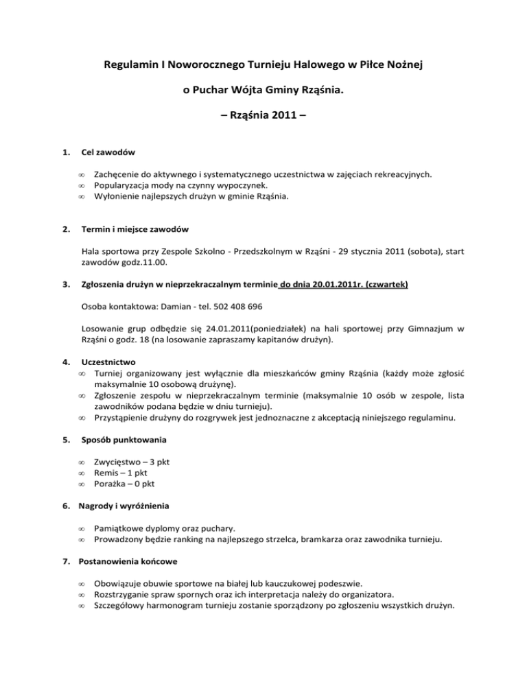 Regulamin I Noworocznego Turnieju Halowego w Piłce Nożnej o