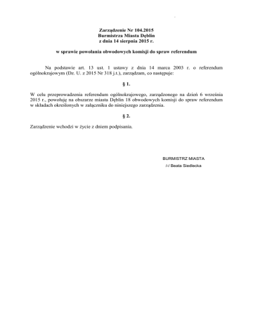 Zarządzenie Nr 104.2015 Burmistrza Miasta Dęblin z dnia 14