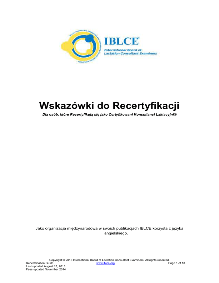 nowe spostrzeżenia i praktyki. Dlatego IBLCE wymaga, aby co pięc lat, wszystkie osoby