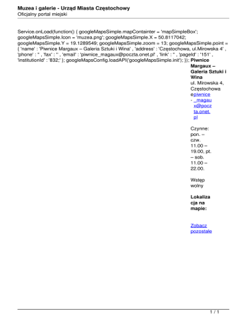 { 'name' : 'Piwnice Margaux – Galeria Sztuki i Wina' , 'address' : 'Częstochowa, ul.Mirowska 4' ,