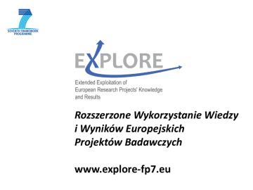 Rozszerzone Wykorzystanie Wiedzy i Wyników Europejskich Projektów Badawczych www.explore-fp7.eu Cel projektu Głównym celem projektu EXPLORE jest spowodowanie zwiększenia wykorzystania wyników projektów B+R w innych krajach/ regionach/ sektorach przemysłu Europy, a także lepsze dostosowanie i koordynacja europejskich i krajowych/ regionalnych funduszy na wdrażanie wyników badań. Extended Exploitation of European Research Projects' Knowledge and Results 2 Wymierne korzyści W ramach projektu EXPLORE utworzona została Platforma internetowa (Platforma Innowacji i Wykorzystania Wyników Projektów), która dostarcza informacji na temat rezultatów innowacyjnych projektów (szczególnie dotyczy to demonstratorów oraz linii pilotażowych) oraz możliwości ich wykorzystania Extended Exploitation of European Research Projects' Knowledge and Results 3 Wymierne korzyści: Wspierana będzie możliwość podjęcia działań prowadzących do zastosowania gotowych wyników projektów B+R w innych regionach/krajach/sektorach przemysłowych według procedur wypracowanych w ramach projektu Baza danych wyników B+R http://explore.explore-fp7.eu/ jest dostępna Extended Exploitation of European Research Projects' Knowledge and Results pod adresem 4 Baza danych wyników B+R: Extended Exploitation of European Research Projects' Knowledge and Results 5 Baza danych wyników B+R: Extended Exploitation of European Research Projects' Knowledge and Results 6 Przykłady wyników B+R: Uniwersalna maszyna do cięcia grawerowania wyrobów ze skóry laserem, znakowania i Urządzenie do szybkiej realizacji (na zamówienie) wyrobów ze skóry (głównie obuwia), jednocześnie ukierunkowane na różne operacje, takie jak cięcie części, znakowanie i grawerowanie na dużych obszarach poprzez zaawansowane sterowanie źródłem laserowym. Oferent: ITIA CNR, Włochy Extended Exploitation of European Research Projects' Knowledge and Results 7 Baza danych wyników B+R: Extended Exploitation of European Research Projects' Knowledge and Results 8 Przykłady wyników B+R: Symulator ENEMAC: symulacja energii obrabiarek Głównym celem jest dostarczenie narzędzia oprogramowania do szacowania zużycia energii obrabiarki podczas realizacji cyklu pracy frezarki. Jest to oprogramowanie dla operatorów i techników w dokonywaniu wyborów na poziomie konstrukcji maszyn, planowania procesów i operacji, biorąc pod uwagę efektywność energetyczną i zużycie energii jako wskaźniki wydajności maszyny. Oferent: ITIA CNR, Włochy Extended Exploitation of European Research Projects' Knowledge and Results 9 Przykłady wyników B+R: Proces produkcji folii strukturalnego kolektora prądu dla ogniw Proces produkcji ma zapewnić folie miedziane do zastosowania w ogniwach akumulatora jako folie gromadzące prąd, które posiadają strukturę makro zawierającą otwory dla lepszego napełniania elektrolitem komórek oraz strukturę mikro na powierzchni o zwiększonej przyczepności do materiału aktywnego. Oferent: Fraunhofer, Niemcy Extended Exploitation of European Research Projects' Knowledge and Results 10 Przykłady wyników B+R: Infrastruktura współpracy do zarządzania sieciami firm Łatwa w użyciu platforma oprogramowania do wspierania tworzenia i zarządzania sieciami przedsiębiorstw, zwłaszcza dla sieci MŚP. Wspiera MŚP w trakcie wyboru i kwalifikacji członków sieci, a także wymianę informacji oraz wiedzy na poziomie sieci. Obsługuje również zarządzanie wydajnością procesów w sieci. Oferent: INESC PORTO, Portugalia Extended Exploitation of European Research Projects' Knowledge and Results 11 Przykłady wyników B+R: Aplikacja IT dla wspólnego planowania Narzędzie IT mające na celu wsparcie planowania współpracy między partnerami biznesowymi w utworzonej sieci przedsiębiorstw, funkcjonujące na zasadzie negocjacji. Służy do wspólnego określenia wyceny dla klienta (np. złożony produkt na zamówienie) i zawiera definicję zagregowanego planu. Po potwierdzeniu zamówienia jest wykorzystywany do aktualizacji wstępnego planu – w przypadku innych dat kilenta, odchylenia planu. Oferent: INESC PORTO, Portugalia Extended Exploitation of European Research Projects' Knowledge and Results 12 Przykłady wyników B+R: Repozytorium wiedzy Ma na celu przechowywanie elementów wiedzy produkcyjnej, wiedzy związanej z planowaniem fabryki, znajomością cyklu życia, o produktach, wiedzą na temat procesów oraz zasobów. Oferent: LMS, Uniwersytet Patras, Grecja Extended Exploitation of European Research Projects' Knowledge and Results 13 Przykłady wyników B+R: Narzędzie dynamicznej rotacji zatrudnienia Wielokryterialne podejście do obliczania harmonogramu rotacji pracy dla manualnych operacji montażu. Umożliwia przydzielanie zadań w czasie, które prowadzi do wyrównanego rozkładu obciążenia pracą. Extended Exploitation of European Research Projects' Knowledge and Results 14 Przykłady wyników B+R: Narzędzie dynamicznej rotacji zatrudnienia (c.d.) • Adaptacja do zakłóceń planu, szybka i skuteczna realokacja operatorów • Operatorzy o wielu kwalifikacjach mogą skutecznie zastąpić współpracowników w przypadku nieoczekiwanych zdarzeń (uszkodzenie, braki) • Operatorzy, których zadania rotują według logicznej częstotliwości unikają skutków monotonnej pracy i są bardziej świadomi zmiany zadań Oferent: LMS, Uniwersytet Patras, Grecja Extended Exploitation of European Research Projects' Knowledge and Results 15 Dziękuję za uwagę ! Extended Exploitation of European Research Projects' Knowledge and Results 16