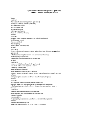 Systemowe determinanty polityki społecznej Autor: Ludmiła