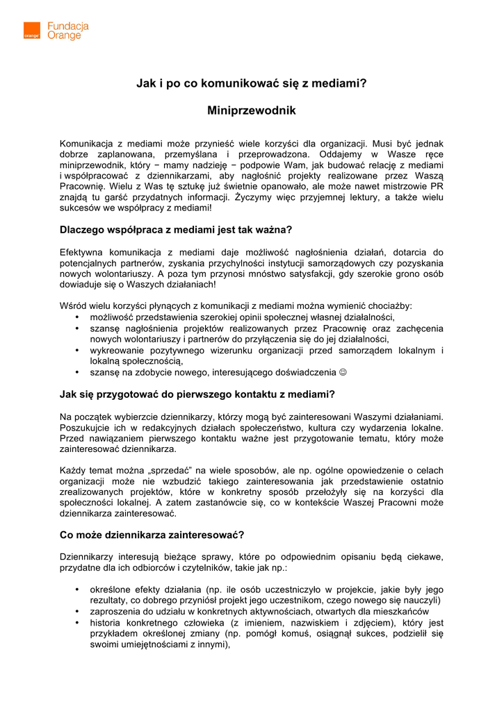 Fundacja Orange-jak i po co komunikowac sie z mediami