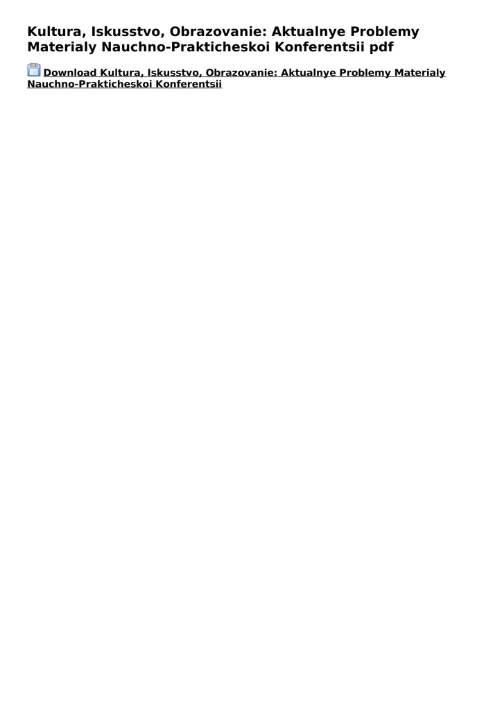 Kultura, Iskusstvo, Obrazovanie: Aktualnye Problemy Materialy