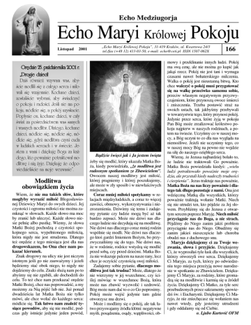 2001 11 (166) - Echo Maryi Królowej Pokoju