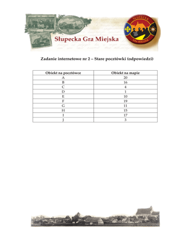Zadanie internetowe nr 2 – Stare pocztówki (odpowiedzi) Obiekt na pocztówce A B C D E F G H I J Obiekt na mapie 20 16 4 1 10 19 11 15 17 3