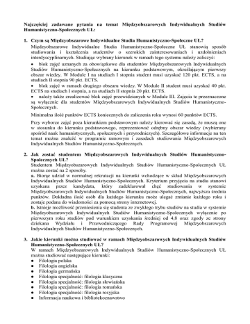 FAQ - Międzyobszarowe Indywidualne Studia Humanistyczno