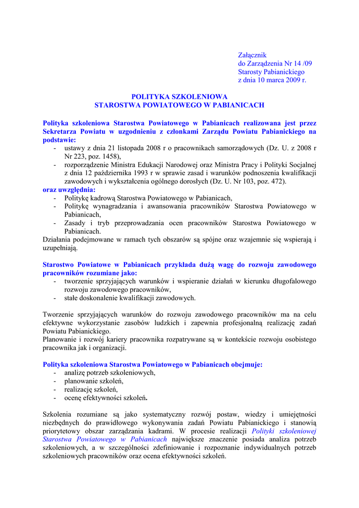 Polityka szkoleniowa - BIP Starostwo Powiatowe w Pabianicach
