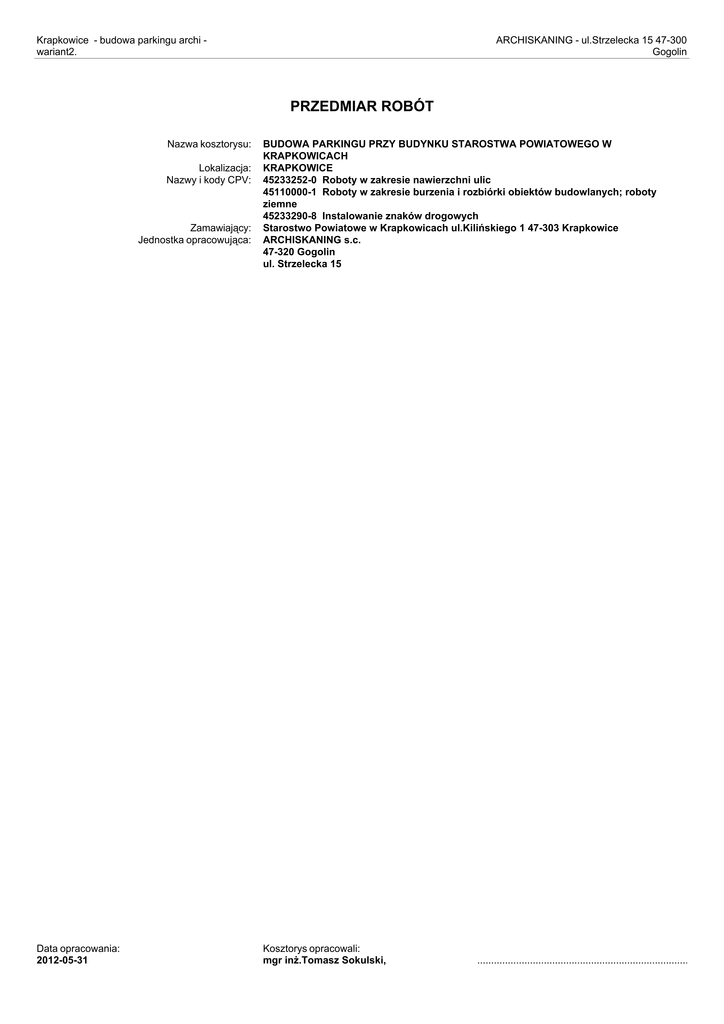 ARCHISKANING - ul.Strzelecka 15 47-300