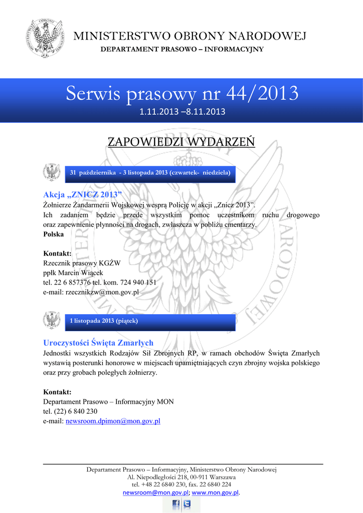Serwis prasowy MON nr 44 - Ministerstwo Obrony Narodowej