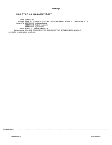 1. Kosztorys nakładczy - Kolskie Towarzystwo Budownictwa