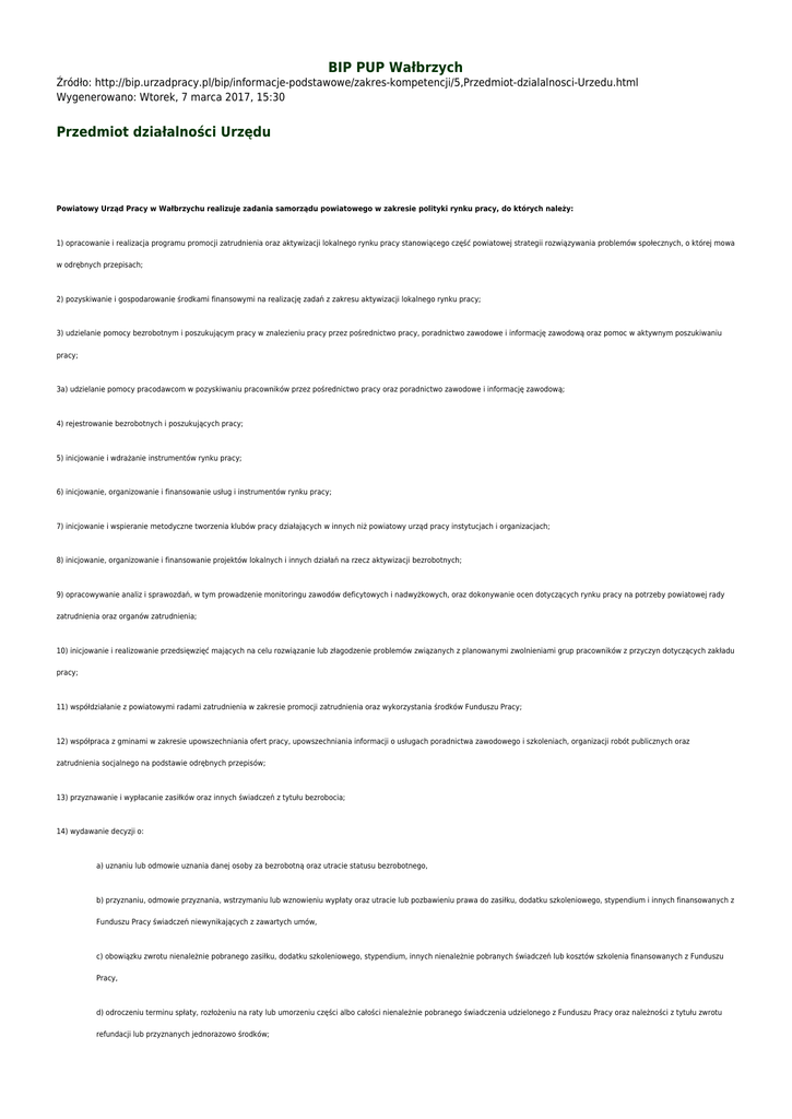 BIP PUP Wałbrzych Przedmiot działalności Urzędu
