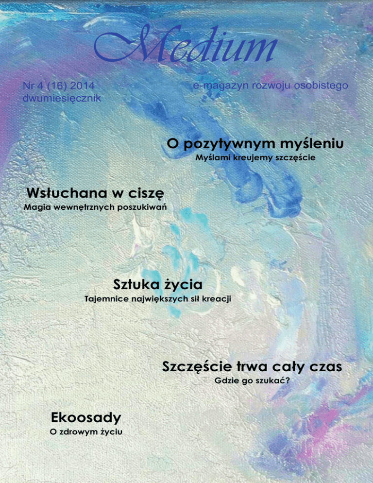 Medium e-magazyn rozwoju osobistego Nr 4 (16) 2014 dwumiesięcznik O pozytywnym myśleniu Myślami kreujemy szczęście Wsłuchana w ciszę Magia wewnętrznych poszukiwań Sztuka życia Tajemnice największych sił kreacji Szczęście trwa cały czas Gdzie go szukać? Ekoosady O zdrowym życiu Na dzień dobry... Koniec wakacji nadchodzi niepostrzeżenie, kiedy wspominamy jeszcze gorące dni i łapczywie próbujemy wykorzystać słoneczne chwile na zielonych łąkach. Chłodne noce i liście brązowiejące na drzewach uświadamiają nam upływ czasu i zbliżającą się jesień. Z westchnieniem wracamy do pracy i codziennych obowiązków, a niektórzy z nas filozoficznie rozmyślają o przemijaniu. Takie refleksje budzą się zazwyczaj wtedy, kiedy z drzew spadają ostatnie liście. A to już niebawem. Zanim się obejrzymy, drzewa wyciągną w stronę nieba nagie konary. Dla mnie to był niegdyś najtrudniejszy moment – pożegnanie pachnącej zieleni, ciepłych promieni słońca i otwarcie na szarą, smutną porę deszczu i chłodu. Potem skulona czekałam: „byle do wiosny”. Tak było dotąd, dopóki nie nauczyłam się myśleć pozytywnie. Zmiana optyki pozwoliła mi zobaczyć, że życie nie kończy się wraz z latem. Dostrzegłam, że drzewa zanim stracą liście, stają się bajecznie kolorowe, a w deszczu można odnaleźć cudowny aromat świeżości. Doceniłam urok mroźnych dni i piękno śniegu pokrywającego ziemię. Zauważyłam, że słońce świeci także jesienią i zimą. Nic nie jest naprawdę złe. To my zabarwiamy zdarzenia i obrazy własnymi emocjami, które wypływają z naszych uprzedzeń i naszych smutnych myśli. Negatywne postrzeganie świata jest największym wrogiem człowieka. Prowadzi do cierpienia, zwątpienia, niskiego poczucia wartości. Pozornie wydaje się to oczywiste, napisano na str. 1 ten temat setki książek. Jednak nadal spotykam się z krytyką pozytywnego myślenia, opartą na niepotwierdzonych teoriach i przemądrzałej sofistyce, która odwołuje się do niewłaściwej interpretacji duchowych przekazów. Ponure mity, jak paskudne widmo krążą w internecie... W tym numerze pokazujemy, czym naprawdę jest pozytywne myślenie i dlaczego jest ono dobre dla człowieka. Uważamy, że jest na świecie sporo ludzi, którzy potrzebują takich wyjaśnień. To, co piszemy, to nasze zdanie. Jak zwykle nikogo nie przekonujemy do swoich racji, bo każdy ma prawo do własnych poglądów. Tworzymy jedynie drogowskazy dla zainteresowanych. Zachęcamy wszystkich do przeczytania o mocy Dwupunktu oraz o tym, jak powstają ekoosady. Stali Czytelnicy znajdą tu jak zwykle nową bajkę, opowieść o runach, smakowite przepisy i recenzję znakomitej książki, którą szczególnie polecamy. To prawdziwy rarytas dla każdego, niezależnie od płci. Życzymy Wam miłej lektury. Medium W numerze Psychologicznie Psychologicznie Szczęście trwa cały czas ....................3 O pozytywnym myśleniu .................... 7 Bajecznie Bajka o właściwym myśleniu ............. 39 Prosperująco Sztuka życia .......................................11 Czy Twoje życie jest przyjemne? ...... 43 Sekret szczęśliwego związku Porozumienie .....................................17 Rozwój osobisty i pozytywne myśli ....47 Moc dobrych myśli ..............................13 Naturalnie Jakie pyszne! ..................................... 19 Ekoosady ........................................... 21 25 Kryształowe uzdrawianie ....................... W harmonii serca .............................. 45 Praktycznie Moc Dwupunktu ............................... 51 Jak radzić sobie z gniewem? ..............53 Moje Vedic Art .................................. 55 Magicznie Runa Ansuz .................................... 57 Kurs zdalnego widzenia .................... 59 Dualizm w horoskopie ....................... 61 Literacko Bractwo Dusz .................................... 63 Uniwersalnie Duchowo Zaprzecz temu, co znasz ...................29 Wirtualna rzeczywistość .................... 69 Recenzja ........................................... 73 Motywacja i duchowość ..................... 33 Ludzie, którzy nas inspirują Thich Nhat Hanh ................................35 Refleksje o Reiki Być nauczycielem .............................. 37 Medium str. 2 Psychologicznie Aneta Śladowska trener rozwoju osobistego, nauczyciel Reiki, rebirther, numerolog http://wierzewsiebie.com Szczęście trwa cały czas Oto Justyna. Justyna musiała z kimś pogadać. prezę z przyjaciółmi. Byliśmy niedawno zaproRzucała jej wnętrzem nieuświadomiona złość, szeni na grilla. Nie poszliśmy, bo był zmęczony która przejawiała się jako żal i apatia. Pewnego po pracy. dnia... – A czy te wszystkie rzeczy musisz robić z nim? – odważyła się zapytać. – Kochanie, czemu taka smutna jesteś, taka – Moje znajome też nie mają czasu, ciągle strapiona – Justyna zapytała samą siebie. Znała dzieci i praca. oczywiście odpowiedź, a przynajmniej wydawało – A czy musisz to robić z innymi ludźmi? – jej się, że tak jest. odważyła się jeszcze bardziej. – Przecież wiesz, że chodzi o Marka. Spędza – Ale co mój partner pomyśli? Przecież jak ze mną tak mało czasu, rzadko się widujemy - pójdę na imprezę sama albo do kina, to pomyśli, zaczęła niepewnie odpowiadać sama sobie – że mam kochanka – zaczęła się tłumaczyć samej a jak się już spotykamy, to jest zmęczony, nie ma sobie. siły nigdzie mnie zabrać. Cały czas pracuje, od– Dlaczego miałby tak pomyśleć? kłada nie wiadomo na co. Nie wiem, co z tym zro– Nie wiem, ale tak głupio robić coś sabić. memu. – Wiesz, mówił, że oszczędza, bo chce kupić – Dlaczego? Boisz się czegoś jeszcze? dom. Własny dom dla nas obojga. Będziesz mieć – Jakoś nie mogę wybrać się sama. własny ogródek. Będziesz jeść jabłka, idąc boso – Czemu? po zroszonej trawie, takie podniesione z tra