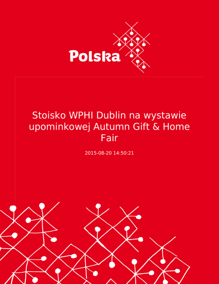 Stoisko WPHI Dublin na wystawie upominkowej Autumn Gift & Home Fair 2015-08-20 14:50:21 2 W dniach 16 – 19 sierpnia 2015 r. Wydział Promocji Handlu i Inwestycji Ambasady RP w Dublinie uczestniczył w wystawie branży upominkowej i wyposażenia wnętrz Autumn Gift & Home Fair odbywającej się w Citywest Center na obrzeżach Dublina. W dniach 16 – 19 sierpnia 2015 r. Wydział Promocji Handlu i Inwestycji Ambasady RP w Dublinie uczestniczył w wystawie branży upominkowej i wyposażenia wnętrz Autumn Gift & Home Fair odbywającej się w Citywest Center na obrzeżach Dublina. Na stoisku informacyjno-promocyjnym WPHI prezentowane były ulotki, katalogi i wybrane produkty nadesłane przez kilkunastu polskich producentów zainteresowanych eksportem swoich towarów na rynek irlandzki. Na osobisty udział w targach na naszym stoisku zdecydowało się sześć firm. Wśród oferowanych produktów znalazły się: akcesoria kuchenne, ceramika użytkowa, kominki, meble drewniane, ozdoby choinkowe, wyroby ze szkła i wełny. Dopełnieniem oferty ambasady były także materiały Polskiej Organizacji Turystycznej promujące walory turystyczne wybranych regionów Polski. Ocenia się, iż w trakcie 4. dniowej wystawy polskie stoisko odwiedziło ok. 250 osób. Wystawa Autumn Gift & Home Fair jest jedną z największych imprez organizowanych w Irlandii dla branży upominkowej i artykułów związanych z wyposażeniem wnętrz. W tym roku wystawiało się 163. firmy. Pochodziły one głównie z Republiki Irlandii, Północnej Irlandii, ale też z Niderlandów, Szwecji i Wielkiej Brytanii. Targi cieszyły się umiarkowanym zainteresowaniem wśród odwiedzających. Ich liczbę szacujemy na ok. 2 - 3 tys. Wystawa postrzegana jest jako jedno z ważniejszych źródeł informacji marketingowej. Uczestnictwo w tym wydarzeniu daje możliwość nawiązania nowych kontaktów handlowych wśród irlandzkich firm detalicznych i hurtowych z szeroko rozumianej branży upominkowej i artykułów dla domu. Wystawcy prezentowali szeroką gamę produktów, wśród których dominowały artykuły dekoracyjne dla domu, biżuteria, ceramika, galanteria skórzana, kapelusze, ozdoby choinkowe, szkło użytkowe i dekoracyjne, świece, wyroby pamiątkarskie i zabawki. Większość z oferowanych wyrobów jest produkowana w Polsce i mogłaby być z powodzeniem oferowana potencjalnym odbiorcom irlandzkim. Kolejna wystawa Autumn Gift & Home Fair odbędzie sie w sierpniu 2016 r. również na terenie kompleksu wystawienniczego Citywest Centre w Dublinie. Wkrótce informacje na ten temat dostępne będą na stronie internetowej: www.autumngiftfair.com. Jeszcze w tym roku polecamy polskim firmom skorzystanie z okazji udziału na naszym stoisku w targach dedykowanych dla właścicieli domów i mieszkań – Ideal Home Show. Impreza ta odbędzie się w dniach 23-26 października br. na terenach wystawowych RDS w Dublinie. Wydarzenie to powinno zainteresować producentów drzwi i okien, elementów dekoracyjnych dla domu, kosmetyków, materiałów izolacyjnych, mebli (także ogrodowych), urządzeń kuchennych. Więcej na temat naszej oferty można znaleźć w zakładce Kalendarium wydarzeń. 3