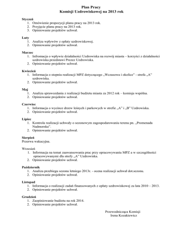 Plan Pracy Komisji Uzdrowiskowej na 2013 rok