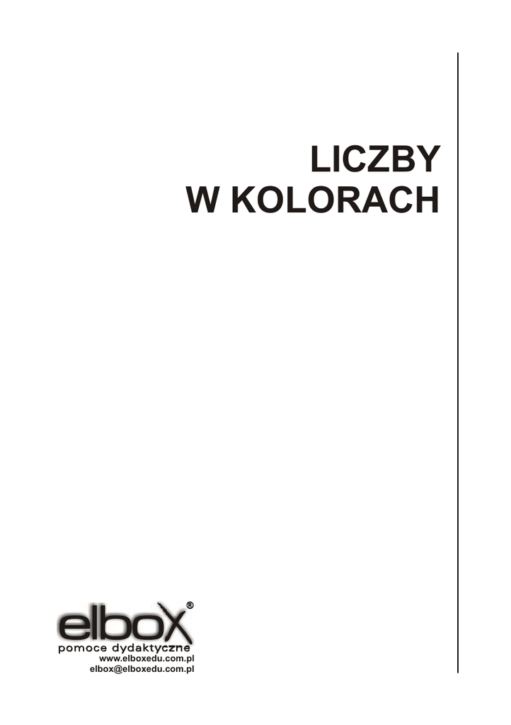 LICZBY W KOLORACH ® www.elboxedu.com.pl [email protected] Środek dydaktyczny zalecany przez Ministra Edukacji Narodowej do użytku w przedszkolach, szkołach podstawowych oraz w szkołach specjalnych. Numer na liście zalecanych środków dydaktycznych 1844/2005. © Copyright by ELBOX Warsaw - Poland 2006 SPIS TREŚCI I. Wstęp ..............................................................................5 II. Budowa i skład pakietu ...................................................6 III. Sposób korzystania z pakietu .........................................6 IV. Przykłady wykorzystania pakietu podczas zajęć dydaktycznych .................................................................7 3 I. Wstęp Pomoc dydaktyczna pozwalająca na kształtowanie podstawowych umiejętności z zakresu arytmetyki. Dzieci uczą się zasad, których znajomość jest niezbędna do prawidłowego wykonywania działań. Zalety zestawu: • kształtuje umiejętność liczenia i odliczania poprzez rozszerzanie zakresu liczenia, przekraczanie progu dziesiątkowego, dodawanie i odejmowanie w zakresie 20, 50, 100, • kształtuje operacyjne myślenie — poziom operacji konkretnych, • uświadamia dzieciom prawidłowości i zasady, które muszą być przestrzegane przy liczeniu, • wdraża dzieci do koncentrowania się na wykonywanym zadaniu — liczeniu, • wprowadza różnego rodzaju działania matematyczne, kształtuje umiejętności dodawania i odejmowania (np. piątkami), • umożliwia ćwiczenia w rachowaniu pomagające dzieciom przejść na poziom dodawania i odejmowania w pamięci, • wdraża dzieci do realizowania zadań zgodnie z poleceniami i rozwiązywania prostych zadań. Trwałość i wysoka jakość wykonania poszczególnych elementów zestawu umożliwiają korzystanie z niego przez wiele lat. 5 II. Budowa i skład pakietu Pakiet uczniowski składa się z 74 kolorowych klocków o przekroju kwadratu 1×1 cm i długości od 1 do 10 cm oraz z odpowiednio ukształtowanej linijki. Linijka o długości 20 cm ma podłużne wgłębienie, w którym można układać klocki i łatwo je przesuwać. Zarówno klocki, jak i linijka są wykonane z estetycznego i lekkiego tworzywa. Pakiet demonstracyjny składa się z metrowej linijki z podziałką centymetrową oraz z zestawu różnokolorowych klocków o odpowiednich wymiarach. Linijka ma podłużne wgłębienie umożliwiające umieszczanie i przesuwanie klocków. III.Sposób korzystania z pakietu Pakiety uczniowskie są przeznaczone do korzystania na ławce szkolnej. Linijka pakietu demonstracyjnego może być mocowana do szkolnej tablicy metalowej dzięki umieszczonym w niej magnesom. Również kolorowe klocki wchodzące w skład zestawu demonstracyjnego są wyposażone w magnesy, a dzięki specjalnej ferrytowej wkładce umieszczonej w linijce klocki te można bezpiecznie przesuwać nawet wówczas, gdy linijka jest przymocowana do tablicy szkolnej, bez obawy o ich wypadnięcie. Klocki pakietu demonstracyjnego można także przytwierdzać bezpośrednio do tablicy. 6 IV.Przykłady wykorzystania pakietu podczas zajęć dydaktycznych Zajęcia nr 1 Temat zajęć: Podróż pociągiem Cele ogólne: • wykonywanie działań łącznych, • zapisywanie działań przy użyciu liter, • redukowanie wyrazów podobnych, • obliczanie wartości liczbowych wyrażeń algebraicznych. Cele operacyjne: 1) Uczeń zna: – sposób zapisywania prawidłowości za pomocą liter, – miejsce liczby w szeregu. 2) Uczeń potrafi: – obliczyć wartości wyrażeń algebraicznych, – redukować wyrazy podobne, – liczyć w aspekcie porządkowym i kardynalnym, – wskazać liczbę poprzednią i następną. 3) Uczeń rozumie: – pojęcie stałości liczby, – sposób redukowania wyrazów podobnych, – pojęcie pary. 7 Metody pracy: 1) Oglądowe: – prezentacja pakietu „Liczby w kolorach”, – zapisywanie prawidłowości za pomocą liter. 2) Praktycznego działania: – wybieranie odpowiednich klocków zgodnie z poleceniem nauczyciela, – umieszczane odpowiednich cyfr w miejsce kolorowych klocków, – zabawa muzyczno - ruchowa, – wykonanie pracy plastycznej. 3) Werbalne: – pogadanka, – opis, – spontaniczne wypowiedzi. Formy organizacyjne: • kształcenie zintegrowane, • praca zespołowa jednolita, • praca indywidualna pod kierunkiem nauczyciela. Środki dydaktyczne: • pakiet „Kolorowe liczby”, • blok rysunkowy, kredki. 8 A. ZAJĘCIA WSTĘPNE 1. Powitanie uczniów. 2. Sprawdzenie obecności (zaznaczenie stanu faktycznego na „Klasowej liście obecności”). 3. Ustalenie nazwy dnia tygodnia, miesiąca, roku (zaznaczenie daty na „Kalendarzach kołowych”). 4. Ocena stanu pogody (zaznaczenie stanu faktycznego na „Kalendarzu pogody”). 5. Zapoznanie z tematem lekcji — zabawa wprowadzająca. Nauczyciel czyta dzieciom fragment wiersza Jana Brzechwy pt. „Lokomotywa”: LOKOMOTYWA Stoi na stacji lokomotywa, Ciężka, ogromna i pot z niej spływa: Tłusta oliwa. Stoi i sapie, dyszy i dmucha, Żar z rozgrzanego jej brzucha bucha: Uch — jak gorąco! Puff — jak gorąco! Uff — jak gorąco! Wagony do niej podoczepiali Wielkie i ciężkie, z żelaza, stali. I pełno ludzi w każdym wagonie, A w jednym krowy, a w drugim konie, 9 A w trzecim siedzą same grubasy, Siedzą i jedzą tłuste kiełbasy. A czwarty wagon pełen bananów, A w piątym stoi sześć fortepianów, W szóstym armata - o! jaka wielka! Pod każdym kołem żelazna belka! W siódmym dębowe stoły i szafy, W ósmym słoń, niedźwiedź i dwie żyrafy, W dziewiątym - same tuczone świnie, W dziesiątym - kufry, paki i skrzynie, A tych wagonów jest ze czterdzieści, Sam nie wiem, co się w nich jeszcze mieści. Lecz choćby przyszło tysiąc atletów I każdy zjadłby tysiąc kotletów, I każdy nie wiem jak się wytężał, To nie udźwigną, taki to ciężar. Nagle - gwizd! Nagle - świst! Para - buch! Koła - w ruch!” Zadaniem dzieci jest narysowanie dwóch składów pociągó