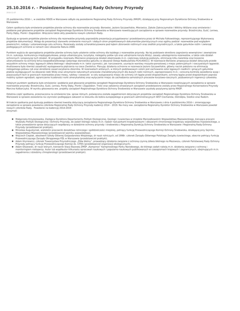 25.10.2016 r. - Posiedzenie Regionalnej Rady Ochrony Przyrody