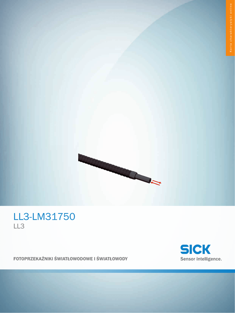 Karta charakterystyki online LL3-LM31750 LL3 FOTOPRZEKAŹNIKI ŚWIATŁOWODOWE I ŚWIATŁOWODY LL3-LM31750 | LL3 FOTOPRZEKAŹNIKI ŚWIATŁOWODOWE I ŚWIATŁOWODY A B C D E F H I J K L M N O P Q R S T Informacje do zamówienia Typ Nr artykułu LL3-LM31750 więcej wersji urządzeń i akcesoriów 2073485 www.sick.com/LL3 Rysunek może się różnić Szczegółowe dane techniczne Cechy Typ urządzenia Światłowód Zasada detekcji System odbiciowy Do fotoprzekaźników światłowodowych WLL170T-2, WLL180T, WLL190T-2 Długość światłowodu 750 mm Materiał rdzenia Włókno szklane Materiał, płaszcz Skrętka z metalu chromowanego z płaczem PVC Wymiary tulei montażowej Ø 5,8 mm Wymiary końcówki Ø 4 mm Kategoria światłowodu Końcówka gładka Końcówka gładka ✔ Promień gięcia światłowodu 20 mm Temperatura otoczenia podczas pracy –10 °C ... +60 °C Klasyfikacje ECl@ss 5.0 27270905 ECl@ss 5.1.4 27270905 ECl@ss 6.0 27270905 ECl@ss 6.2 27270905 ECl@ss 7.0 27270905 ECl@ss 8.0 27270905 ECl@ss 8.1 27270905 ECl@ss 9.0 27270905 ETIM 5.0 EC002651 ETIM 6.0 EC002651 UNSPSC 16.0901 39121528 Zasięgi z WLL170-2 Światło czerwone 250 µs 120 mm Światło zielone 250 µs 30 mm Highspeed 50 µs 40 mm Zasięgi z WLL180T Tryb pracy 16 µs 50 mm Tryb pracy 70 µs 140 mm 2 FOTOPRZEKAŹNIKI | SICK Karta charakterystyki online | 2017-03-03 20:03:10 Informacje mogą ulec zmianie bez powiadomienia LL3-LM31750 | LL3 FOTOPRZEKAŹNIKI ŚWIATŁOWODOWE I ŚWIATŁOWODY Tryb pracy 250 µs 240 mm Tryb pracy 2 ms 220 mm Tryb pracy 8 ms 220 mm Rysunek wymiarowy (Wymiary w mm) LL3-LM31750 750 5.8 (0.23) 4 (0.16) 2.15 (0.08) 15.4 (29.53) (0.61) 11.4 (0.45) 2017-03-03 20:03:10 | Karta charakterystyki online Informacje mogą ulec zmianie bez powiadomienia FOTOPRZEKAŹNIKI | SICK 3 Karta charakterystyki online SICK W SKRÓCIE Firma SICK należy do czołowych producentów inteligentnych czujników i rozwiązań wykorzystujących czujniki do zastosowań przemysłowych. Wyjątkowa gama produktów i usług stwarza idealną podstawę dla bezpiecznego i wydajnego sterowania procesami, ochrony ludzi przed wypadkami i unikania zanieczyszczenia środowiska. Mamy szerokie doświadczenie w różnych branżach i znamy występujące w nich procesy oraz wymagania. Nasze inteligentne czujniki zapewniają klientom dokładnie to, czego im potrzeba. W centrach aplikacji w Europie, Azji i Ameryce Północnej rozwiązania systemowe są testowane i optymalizowane pod kątem potrzeb konkretnych klientów. Wszystko to sprawia, że jesteśmy niezawodnym dostawcą i partnerem w zakresie rozwoju. Naszą ofertę dopełniają kompleksowe usługi: rozwiązania SICK LifeTime Services wspierają klientów w trakcie całego cyklu użytkowania maszyny i dbają o bezpieczeństwo i produktywność. Właśnie tak rozumiemy hasło „Sensor Intelligence”. BLISKO KLIENTA NA CAŁYM ŚWIECIE: Osoby kontaktowe i pozostałe lokalizacje - www.sick.com SICK AG |Waldkirch|Niemcy |www.sick.com