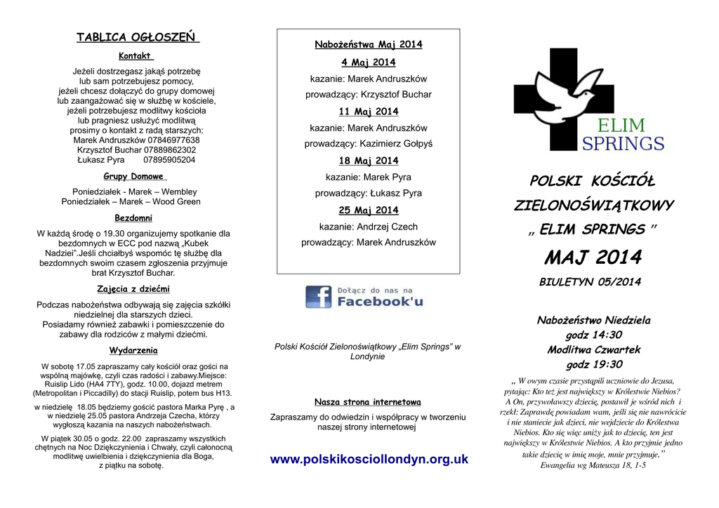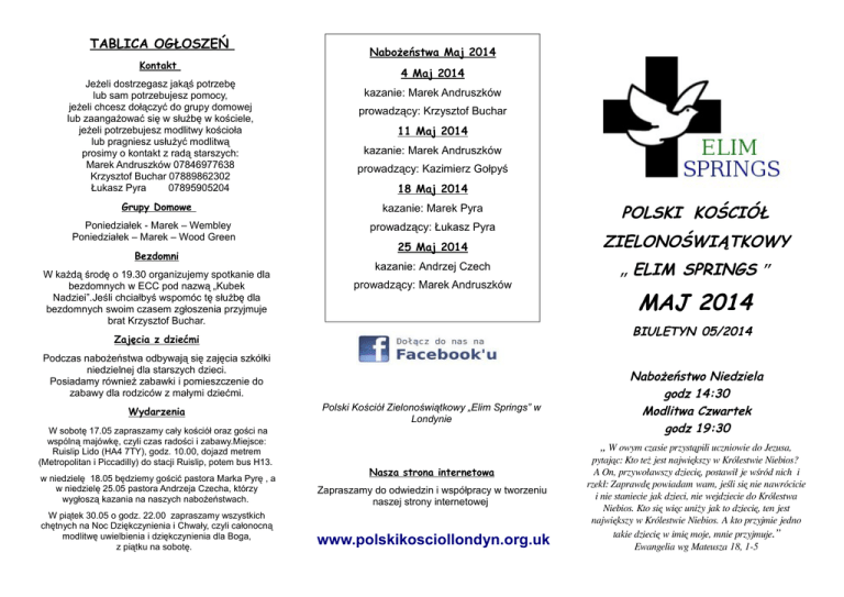„ elim springs ” maj 2014 - Polski Kościół Chrześcijański Elim