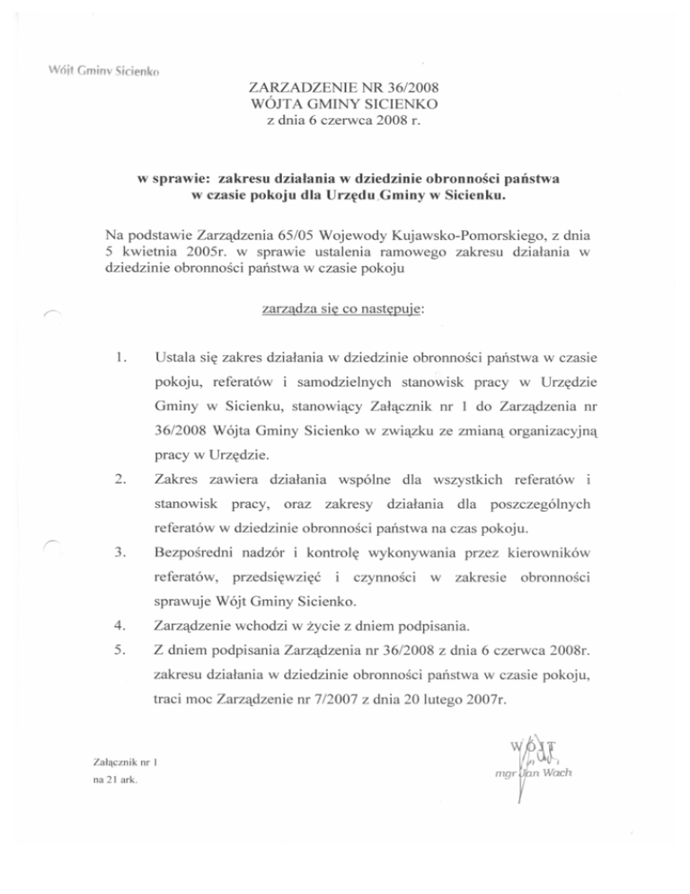 Zarządzenie nr 36/2008 - Urząd Gminy w Sicienku