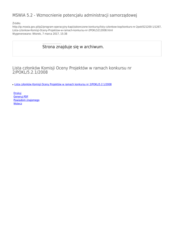 MSWiA 5.2 - Wzmocnienie potencjału administracji samorządowej Źródło: http://ip.mswia.gov.pl/ip2/program-operacyjny-kapi/zakonczone-konkursy/listy-czlonkow-kop/konkurs-nr-2pokl521200-1/1267, Lista-czlonkow-Komisji-Oceny-Projektow-w-ramach-konkursu-nr-2POKL5212008.html Wygenerowano: Wtorek, 7 marca 2017, 15:38 Strona znajduje się w archiwum. Lista członków Komisji Oceny Projektów w ramach konkursu nr 2/POKL/5.2.1/2008 ● Lista członków Komisji Oceny Projektów w ramach konkursu nr 2/POKL/5.2.1/2008 Drukuj Generuj PDF Powiadom znajomego Wstecz