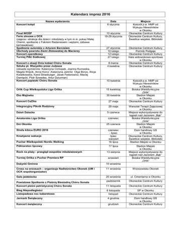 Kalendarz imprez 2016 - Okoneckie Centrum Kultury