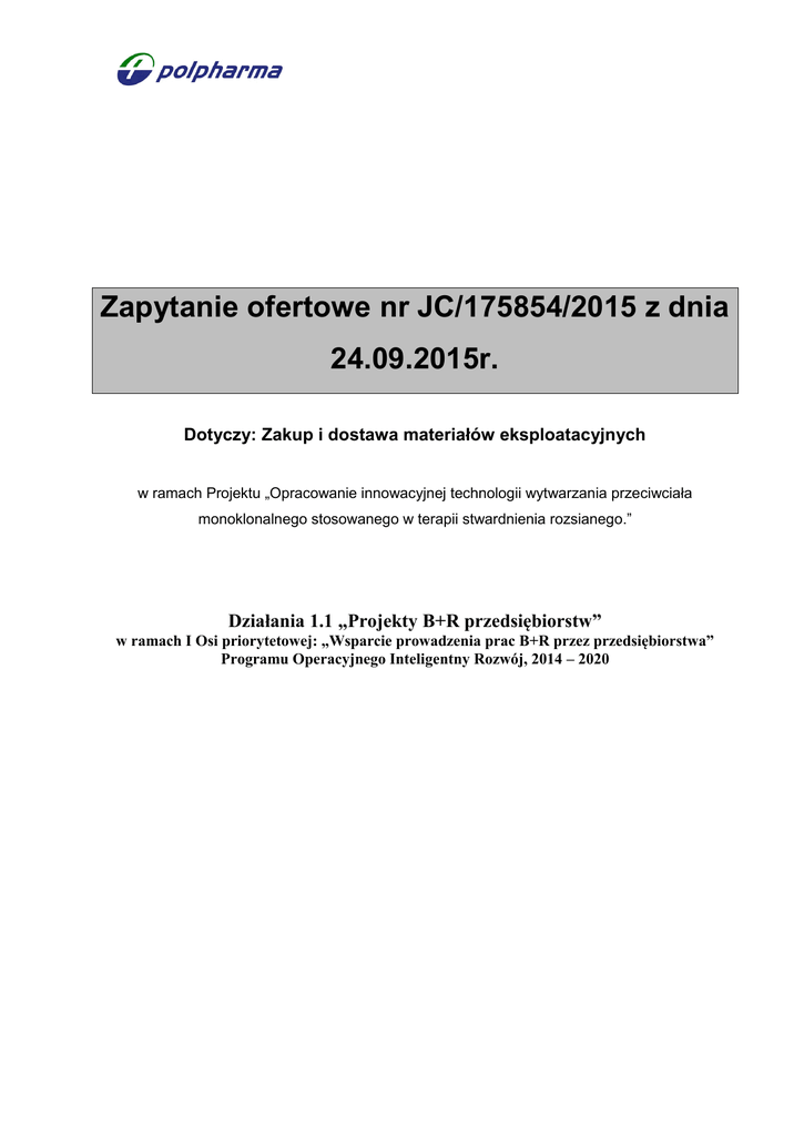 Zapytanie ofertowe nr JC/175854/2015 z dnia 24.09