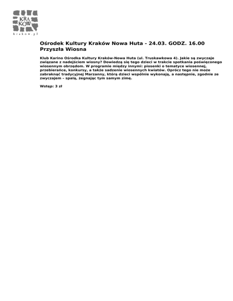 Ośrodek Kultury Kraków Nowa Huta - 24.03. GODZ. 16.00 Przyszła