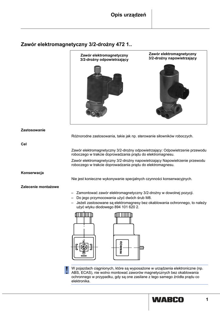 Zawór elektromagnetyczny 3/2-drożny 472 1..