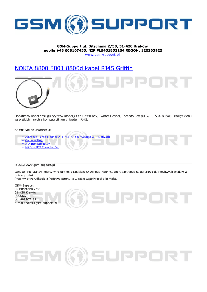 NOKIA 7610 7610b 6670 6670b kabel RJ45 Griffin - GSM
